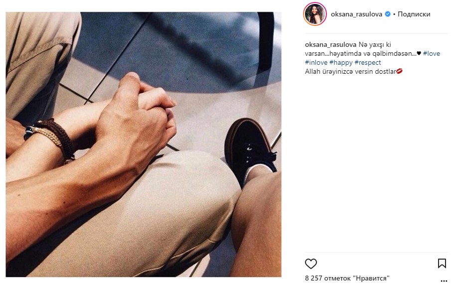 Ötən gün rəqqasə Oksana Rəsulova instaqram səhifəsində sevgilisi ilə əl-ələ çəkdirdiyi fotonu bölüşüb. O, həmin paylaşıma “Nə yaxşı ki, varsan, həyatımdasan” yazıb.