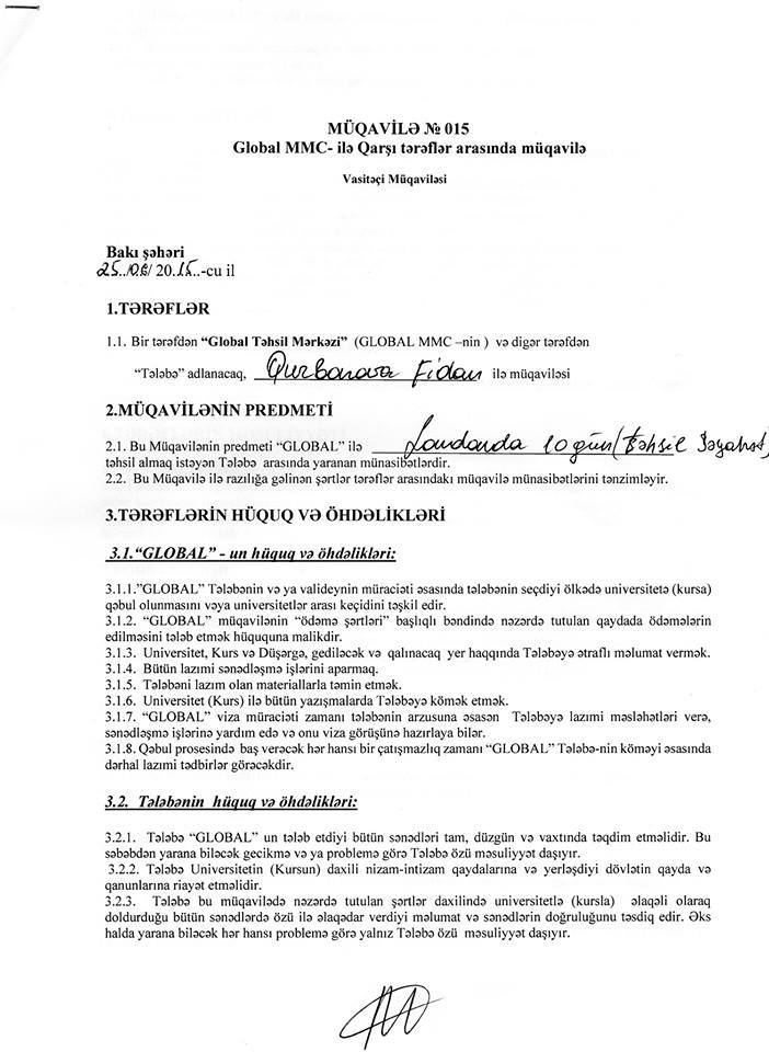 Bakı şəhər sakini Mahirə Qurbanova “Global Edu.az” xaricdə təhsil şirkətinin fırıldaqçılığına məruz qaldığını bildirir.