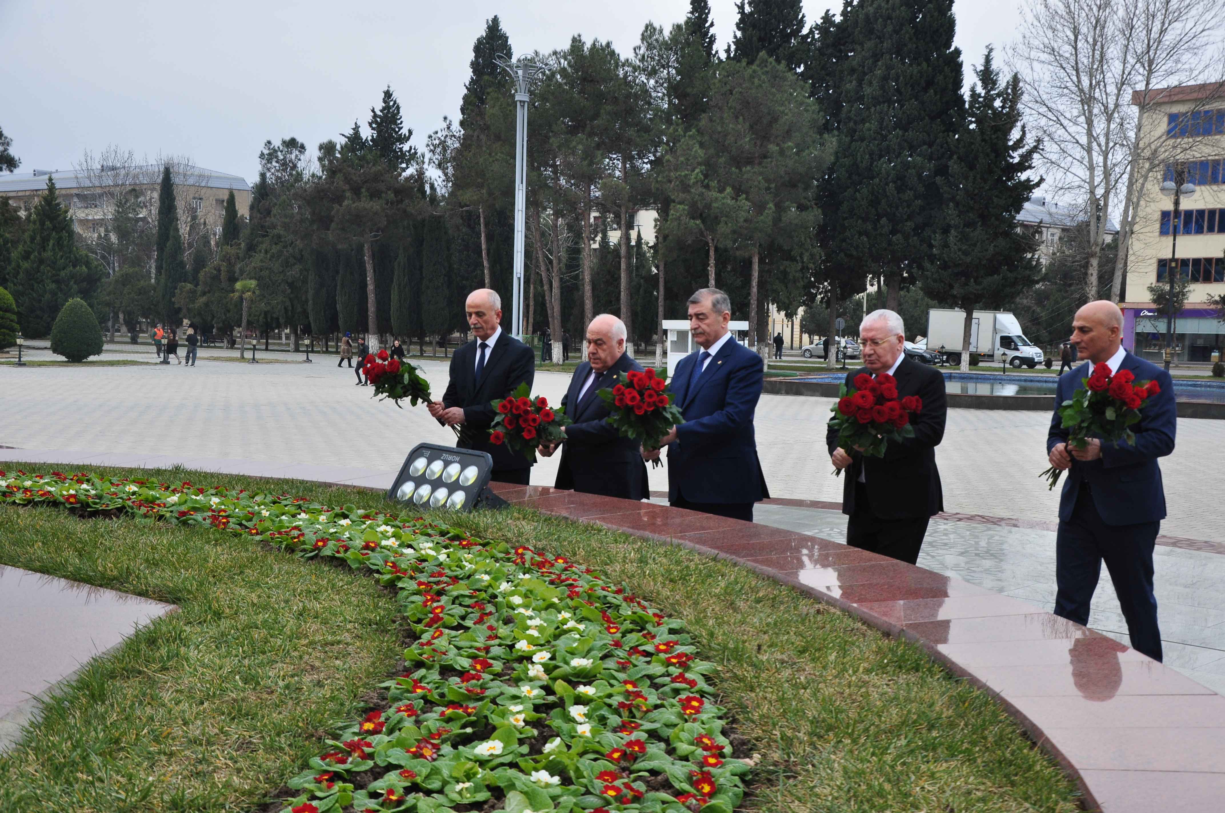 “Qafqazinfo” xəbər verir ki, tədbirdə öncə şəhərin mərkəzi meydanında ucalan Ulu Öndər Heydər Əliyevin abidəsi ziyarət edilib, abidə önünə tər güllər düzülərək, əziz xatirəsi ehtiramla anılıb.