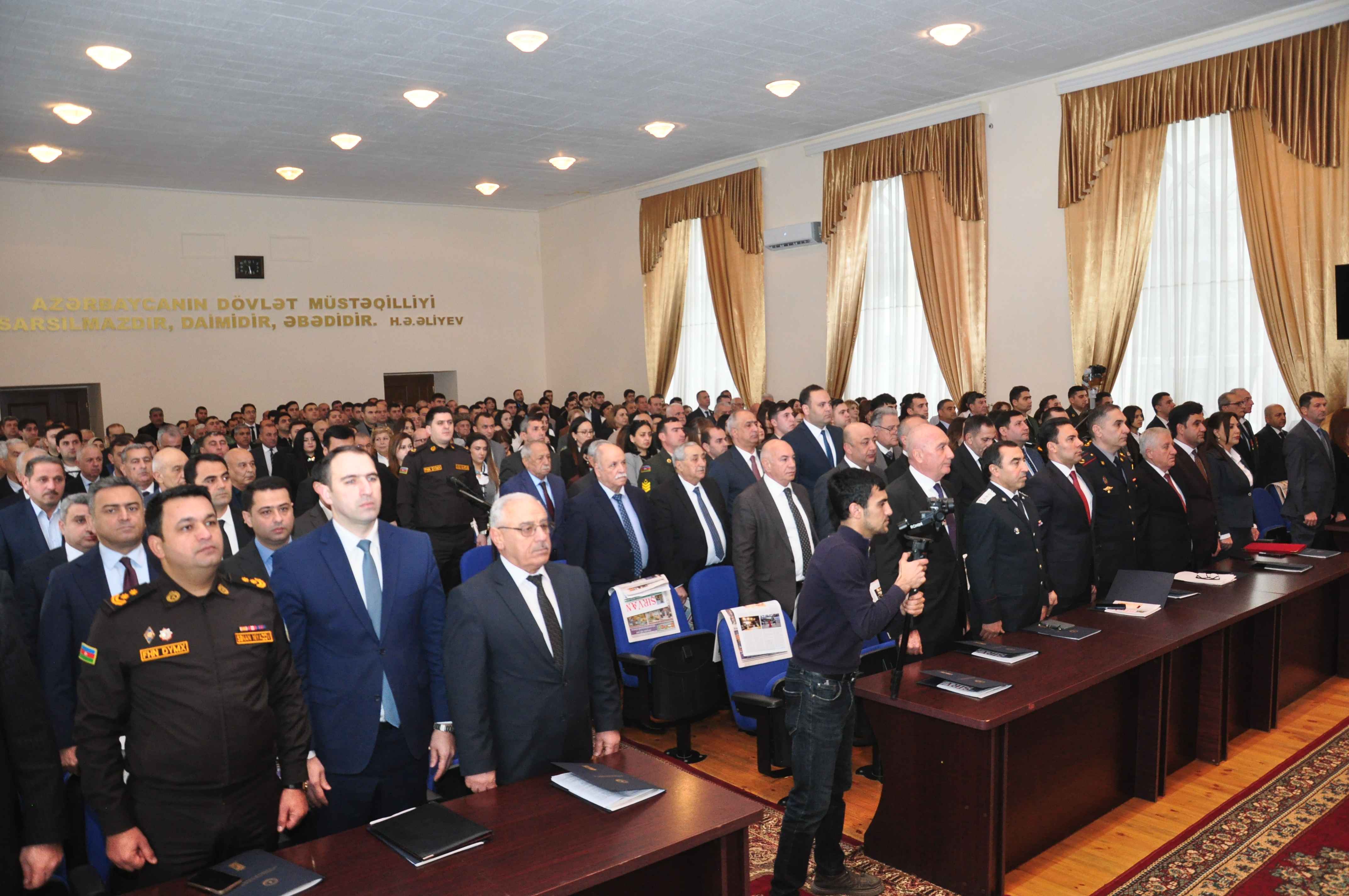 Toplantıda əvvəlcə Dövlət Himni səsləndirilib, Ulu Öndər Heydər Əliyevin və ölkəmizin ərazi bütövlüyü uğrunda canından keçən şəhidlərimizin əziz xatirəsi bir dəqiqəlik sükutla yad edilib.