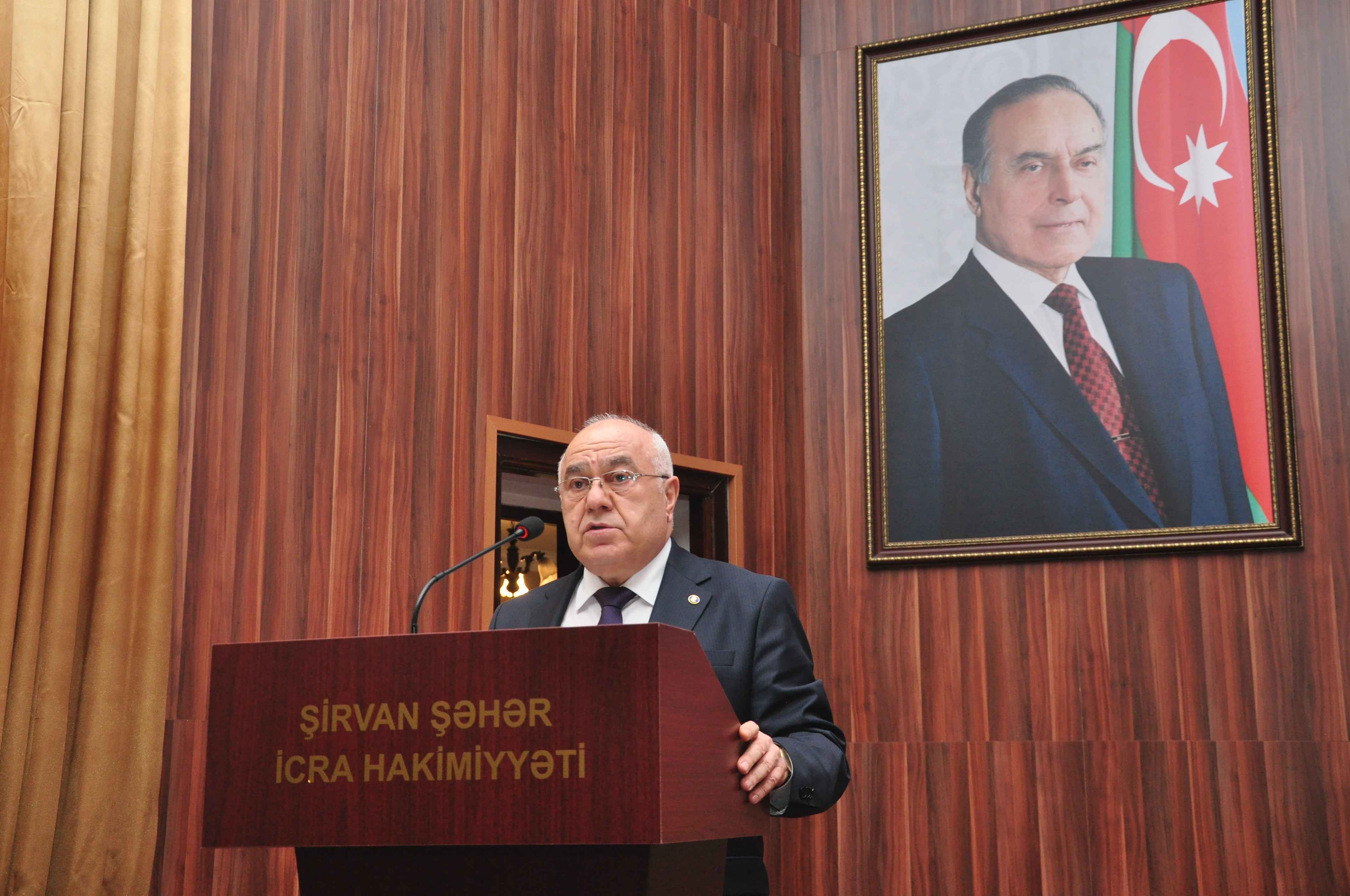 Şirvan Şəhər İcra Hakimiyyətinin başçısı İlqar Abbasov geniş məruzə ilə çıxış edərək, bildirib ki, müasir müstəqil Azərbaycan dövlətinin memarı və qurucusu Ümummilli lider Heydər Əliyevin uzaqgörən strategiyası və müdrik siyasəti sayəsində möhkəm əsaslar üzərində qurulan inkişaf yolu bu gün Möhtərəm Prezidentimiz cənab İlham Əliyev tərəfindən uğurla davam etdirilir, dövlətimizin beynəlxalq aləmdə mövqeyi daha da möhkəmlənir, siyasi-iqtisadi və mədəni əlaqələri genişlənir. Azərbaycan nüfuzlu dövlətlər arasında diplomatik münasibətlərdə əsas söz sahibinə çevrilir.