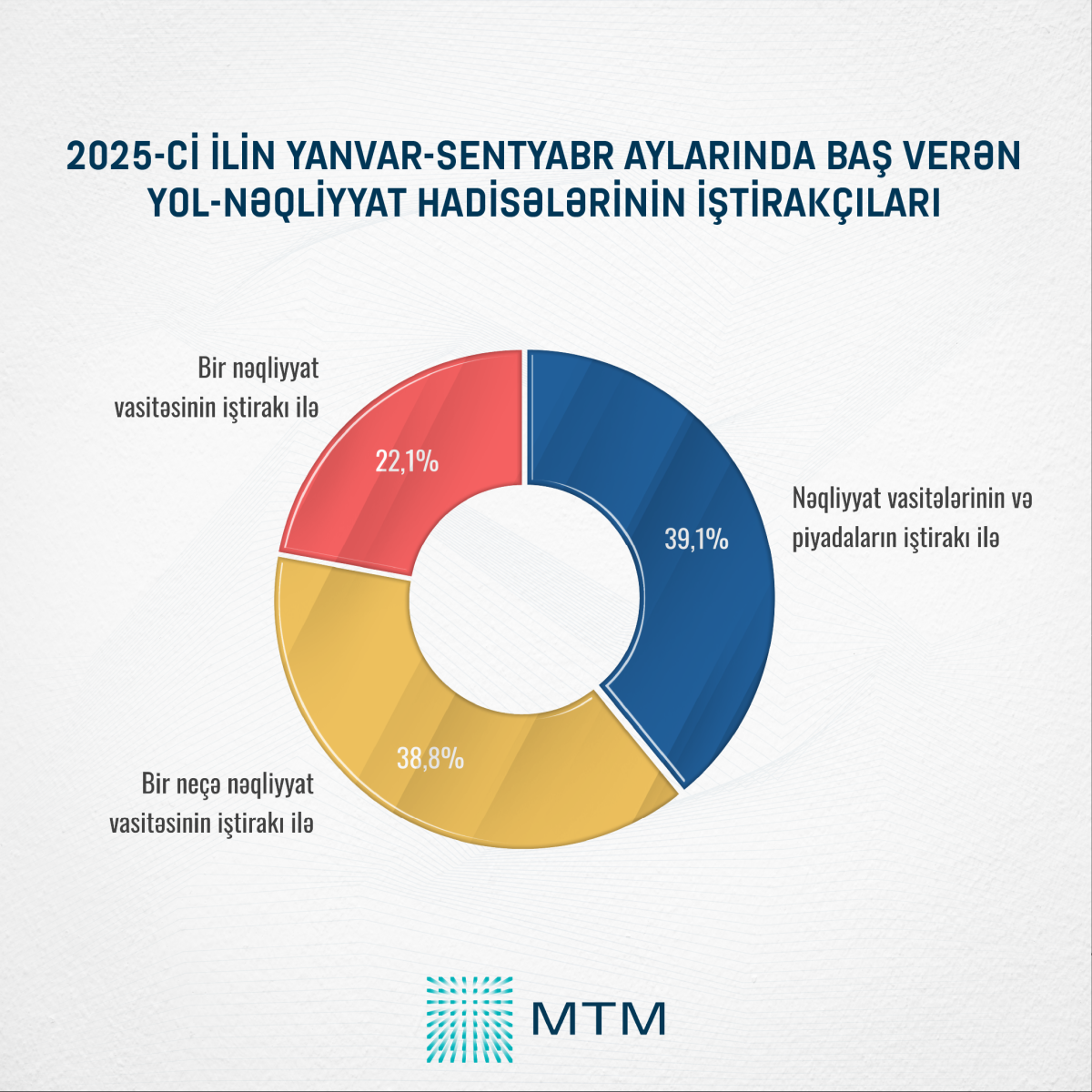 Cari ilin yanvar–sentyabr aylarında ölkədə baş verən yol-nəqliyyat hadisələrinin strukturunda əsas payı nəqliyyat vasitələrinin və piyadaların iştirakı ilə baş verən qəzalar təşkil edib. Belə ki, qeyd olunan dövrdə hadisələrin 39,1%-i sürücü–piyada toqquşmalarının payına düşüb. Bu göstərici piyadaların yol hərəkətində ən həssas qrup olaraq qalmasını və piyada təhlükəsizliyi üzrə görülən tədbirlərin hələ də kifayət qədər effektiv nəticə vermədiyini göstərir.
