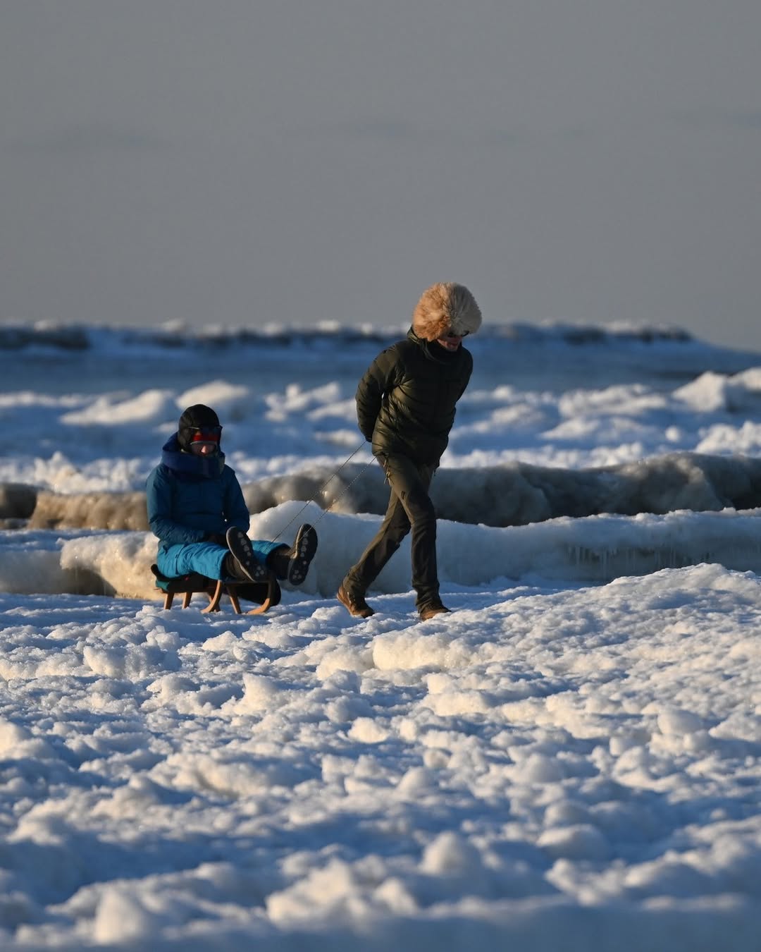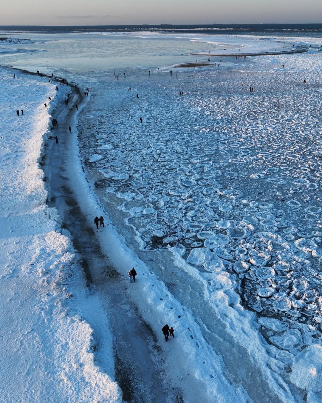 “Qafqazinfo” xəbər verir ki, ölkənin sahil bölgələrində insanlar donmuş Baltik dənizi üzərində gəzməyə çıxıblar.