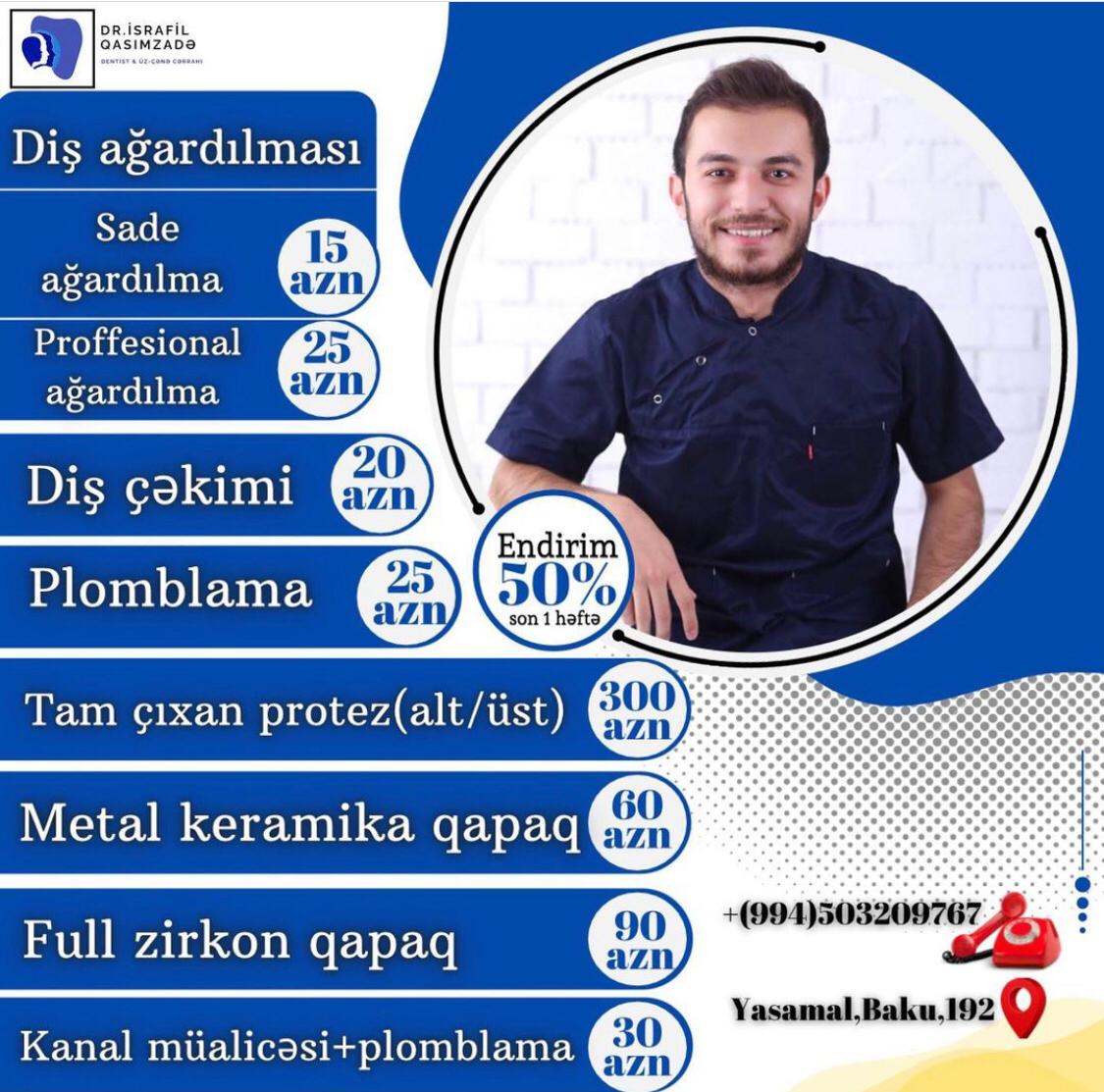 Stomatoloq İsrafil Qasımzadə endirim kampaniyası elan edib.