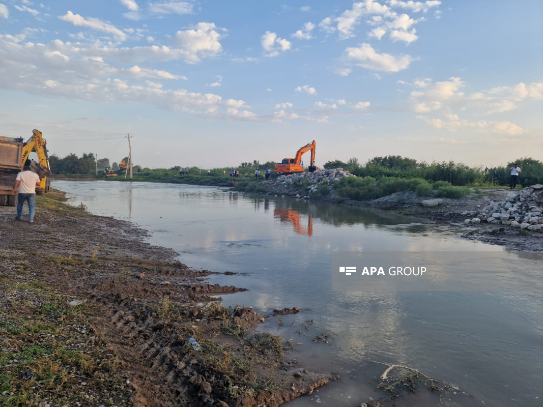 Hazırda aidiyyəti qurumlarla koordinasiyalı şəraitdə su kanalının bəndinin uçmuş hissəsinin bərpası işləri davam etdirilir.