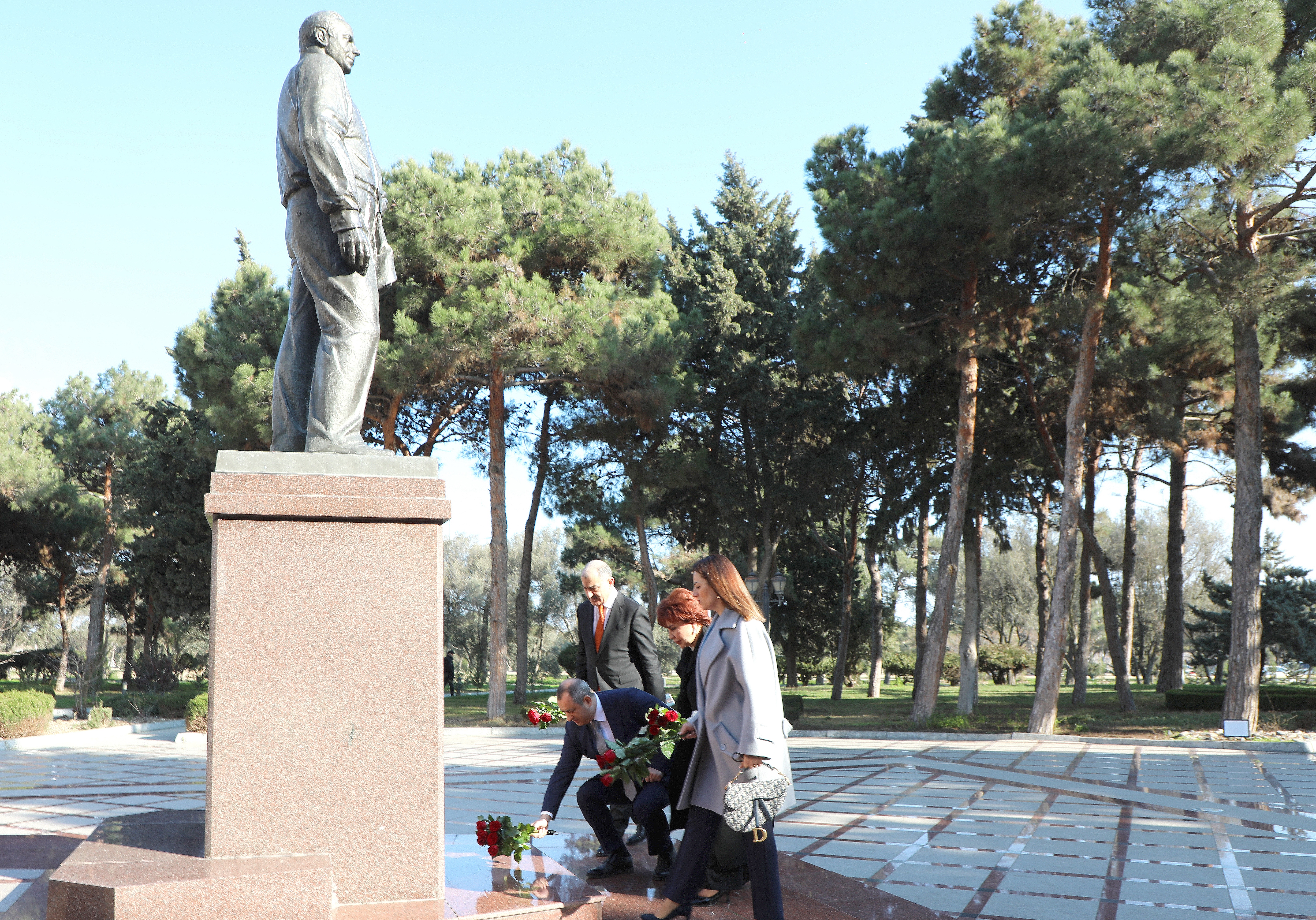 Tədbir öncəsi rayon rəhbərliyi və gənclər Ulu Öndərin Heydər Əliyev parkında yerləşən abidəsini ziyarət edərək önünə gül dəstələri düzüblər.