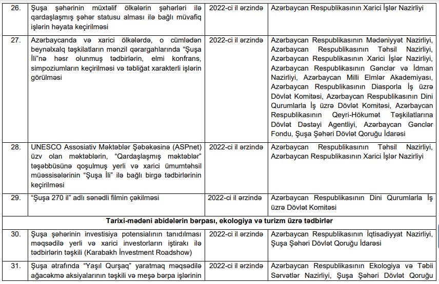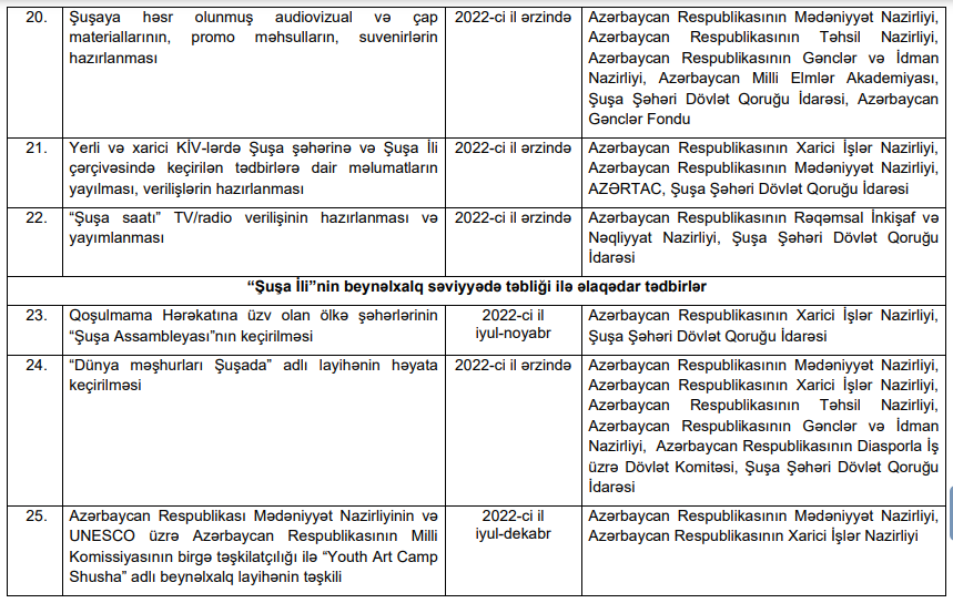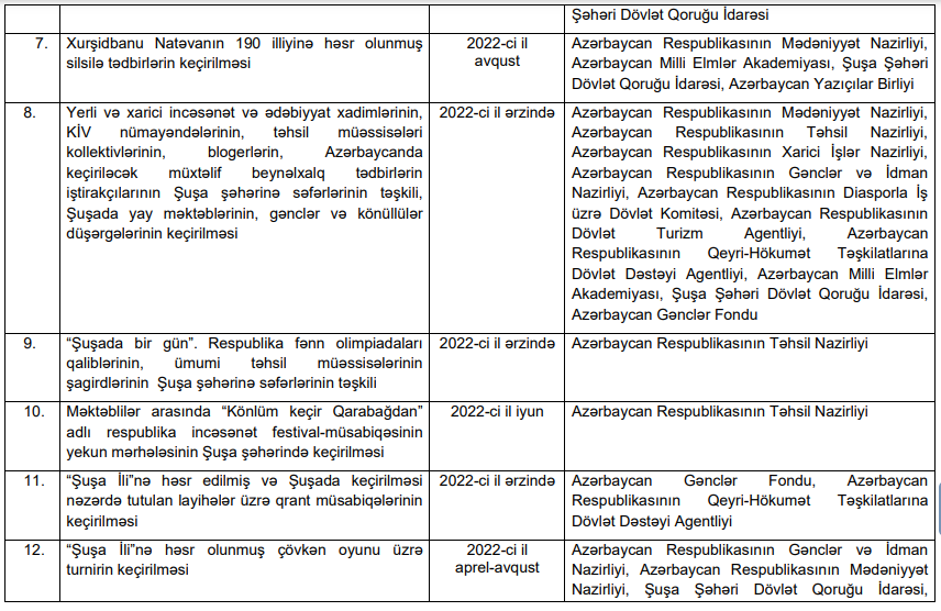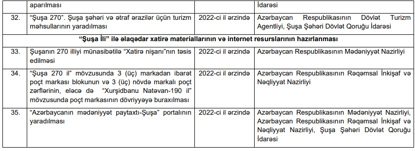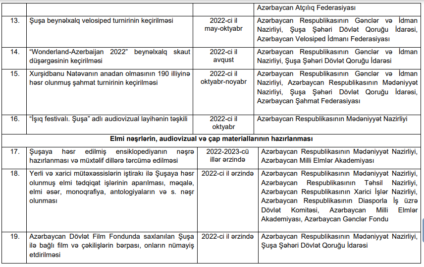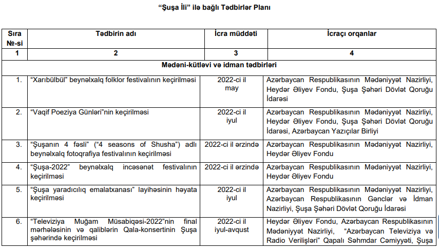 “Şuşa İli” ilə bağlı Tədbirlər Planı təsdiq edilib.