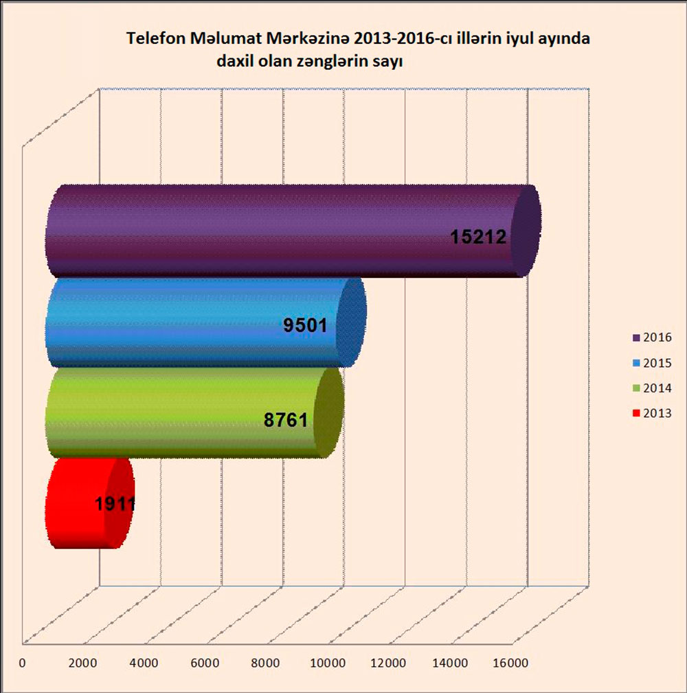 "Qafqazinfo" Nazirliyin saytına istinadən xəbər verir ki, vətəndaşlarla iş bölməsinə 19 815 müraciət daxil olub. Statistikaya əsasən, Telefon Məlumat Mərkəzində 15 212 zəng (2013-cü ilin müvafiq dövrü ilə müqayisədə 8 dəfə çox, 2014-cü ilin müvafiq dövrü ilə müqayisədə 1,7 dəfə çox, 2015-ci ilin müvafiq dövrü ilə müqayisədə 1,6 dəfə çox) qəbul edilib.