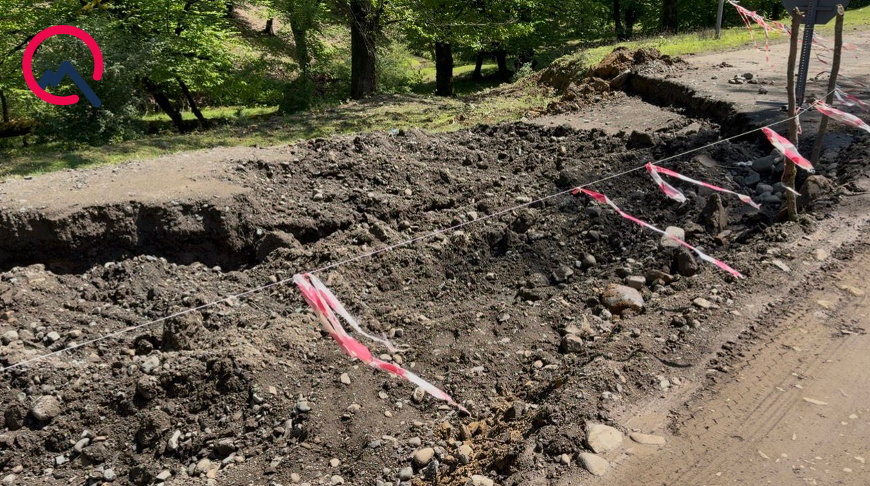 Yol örtüyündə dərin yarıqlar və çökmələr əmələ gəlib. Ərazidə yerləşən iri ağaclardan biri də kökündən çıxaraq aşıb.