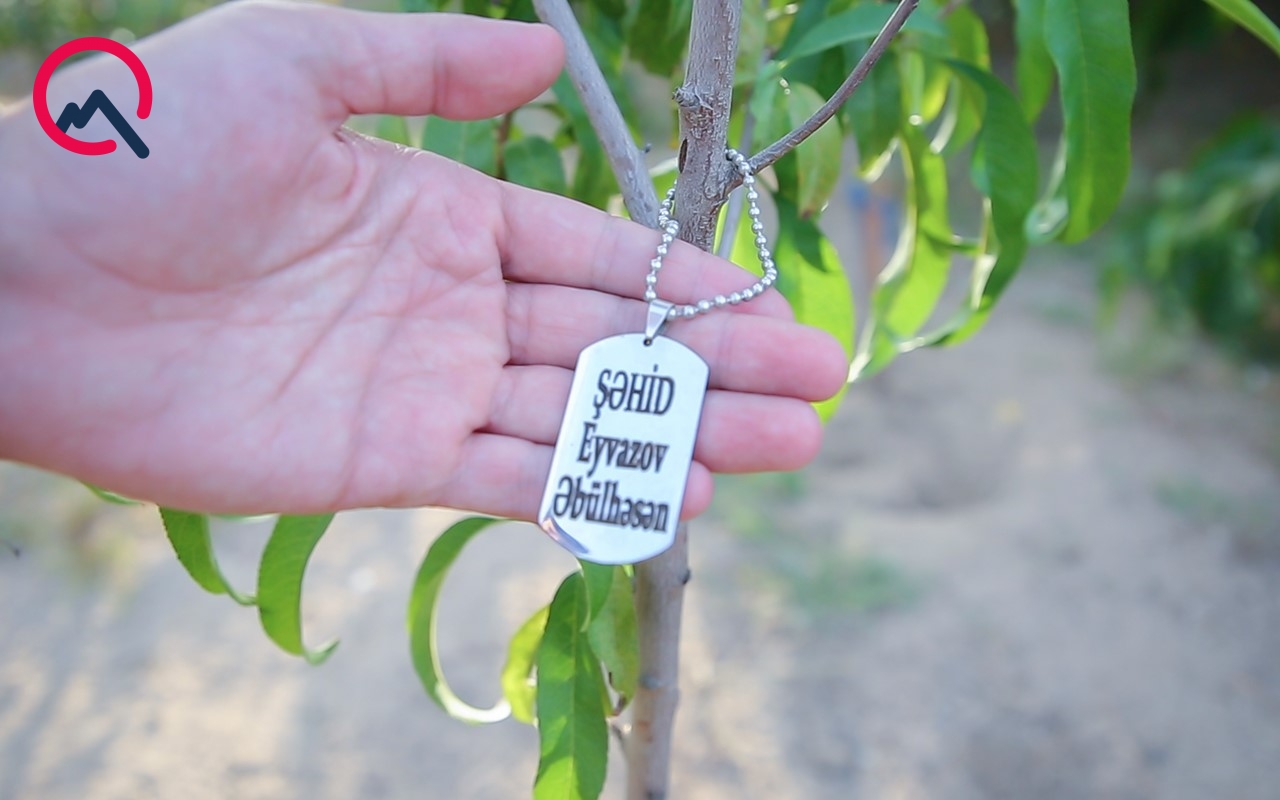 Adlarını çəkdiyimiz bu səkkiz şəhid Vətən müharibəsi iştirakçısı Əli Əhmədlinin döyüş yoldaşlarıdır. Hələ müharibə gedə-gedə onların xatirəsini əbədiləşdirməyi arzulayan Əli Əhmədli bu istəyini reallığa çevirib. Evinin həyətində səkkiz şəhidin hərəsinin adına bir fidan əkib. Deyir ki, gələcəkdə ağaclarda yetişəcək meyvələri döyüş yoldaşlarının ailələrinə çatdıracaq.