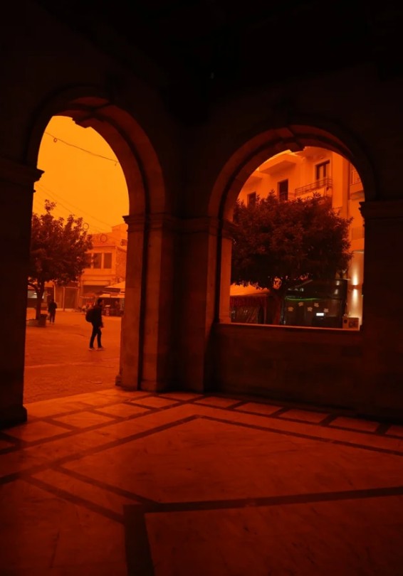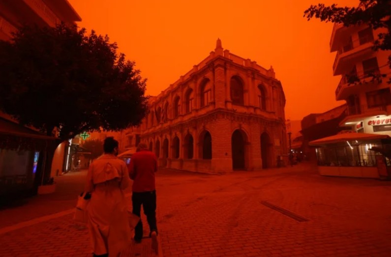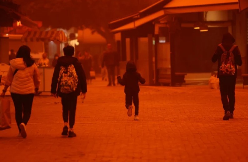 Bildirilib ki, cənubdan əsən güclü küləklər toz hissəciklərini regiona daşıyıb və bu da atmosferdə rəng dəyişikliklərinə səbəb olub. Yunanıstan Meteorologiya İdarəsi havadakı tozun tədricən azalacağını proqnozlaşdırır.