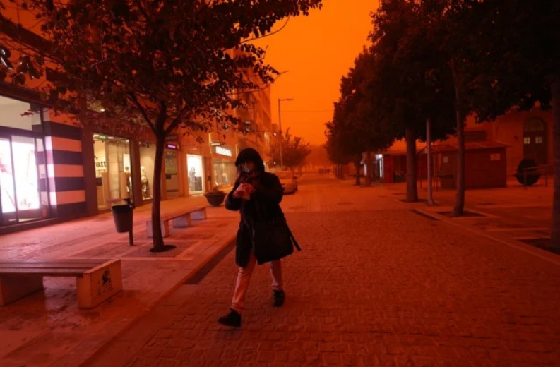 “Qafqazinfo” xəbər verir ki, Afrikadan gələn səhra tozu səbəbindən adada səma qırmızı rəngə bənzər görüntü alıb.