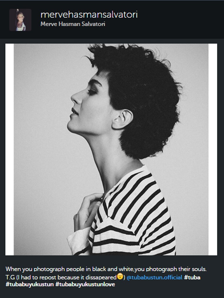 T. Büyüküstün isə aşağıdakı şəkli “Fotoqraf Merve Hasman...Həftəsonu” şərhiylə öz İnstaqram hesabında pylaşıb.