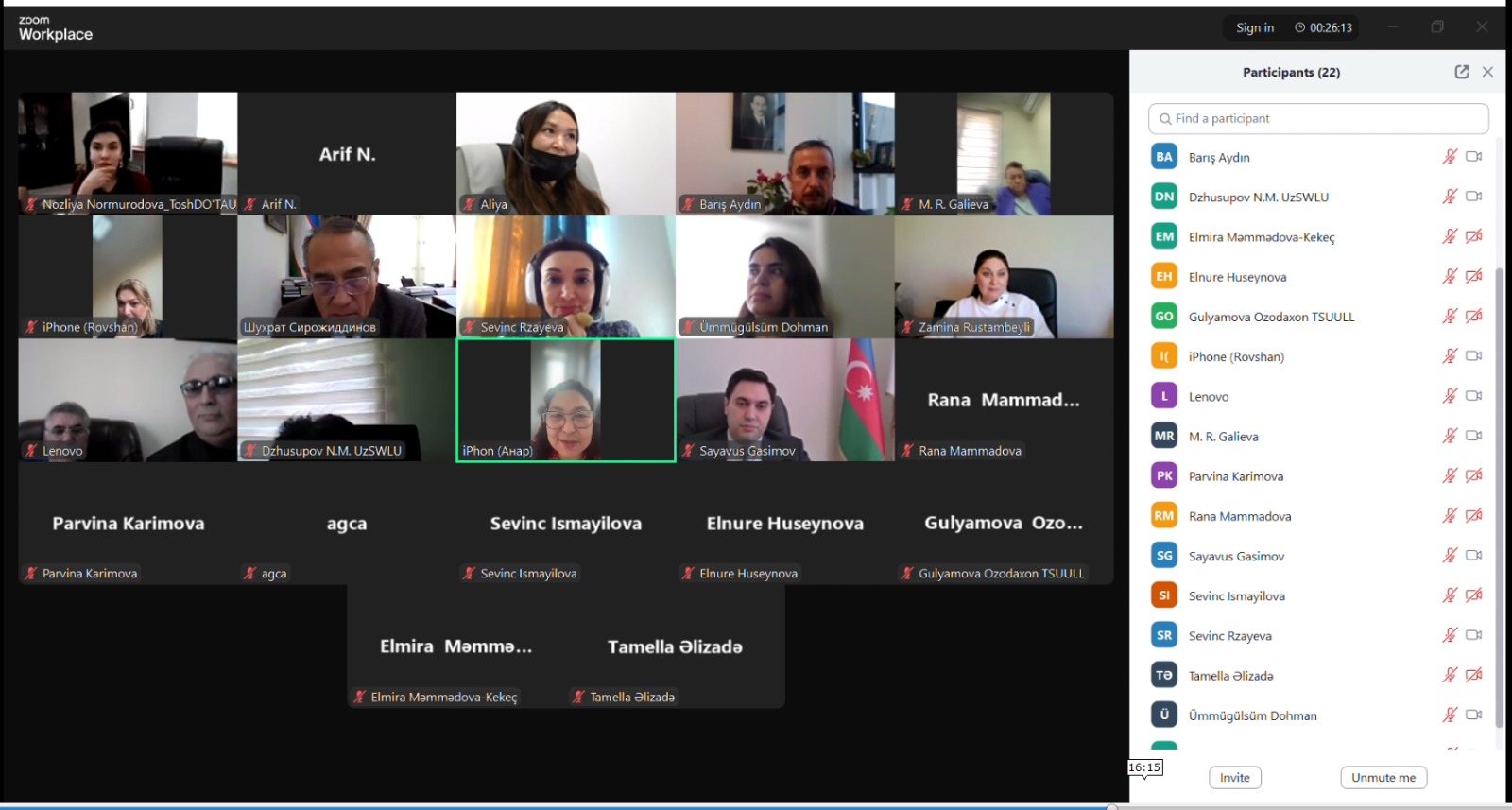 “Qafqazinfo” xəbər verir ki, iclasda Bakı Avrasiya Universitetinin (BAAU) rektoru, dosent Səyavuş Qasımov, Nəzəri dilçilik və türk dilləri kafedrasının müdiri dosent Zəminə Rüstəmbəyli, o cümlədən AMEA İ.Nəsimi adına Dilçilik İnstitutunun direktoru professor Nadir Məmmədli, AMEA Dilçilik İnstitutunun Sosiolinqvistika və psixolinqvistika şöbəsinin müdiri, həmçinin BAAU-nun professoru Mayıl Əsgərov və Özbəkistan Respublikasının Əlişir Nəvai adına Daşkənd Özbək Dili və Ədəbiyyatı Universitetinin rektoru akademik Şoxrat Sirojiddinov, Özbəkistan Respublikasının Daşkənd Dövlət Dünya Dilləri Universitetinin, Qazaxıstan Respublikasının Ə.Baytursunlu adına Dilçilik İnstitutunun, Türkiyə Respublikasının Hacəttəpə Universitetinin və Trakya Universitetinin nümayəndələri və bir qrup alimlər iştirak ediblər.
