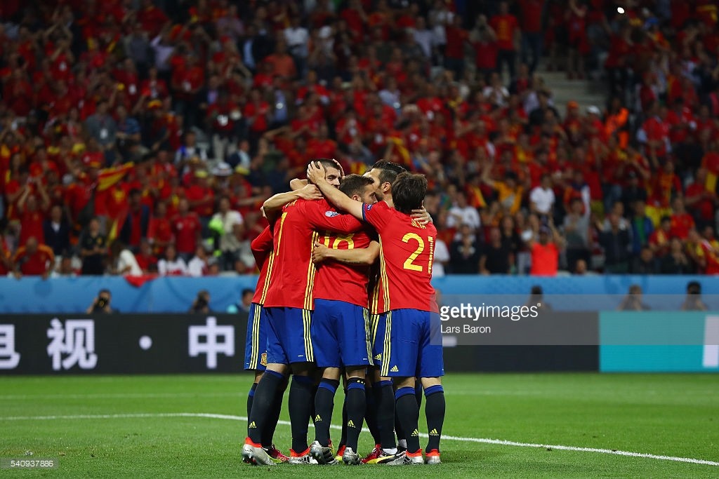 37-ci dəqiqədə İspaniyanın oyunçusu Nolito komandasının ikinci qolunu vurur. Hesab 2:0 İspaniyanın xeyrinədir.