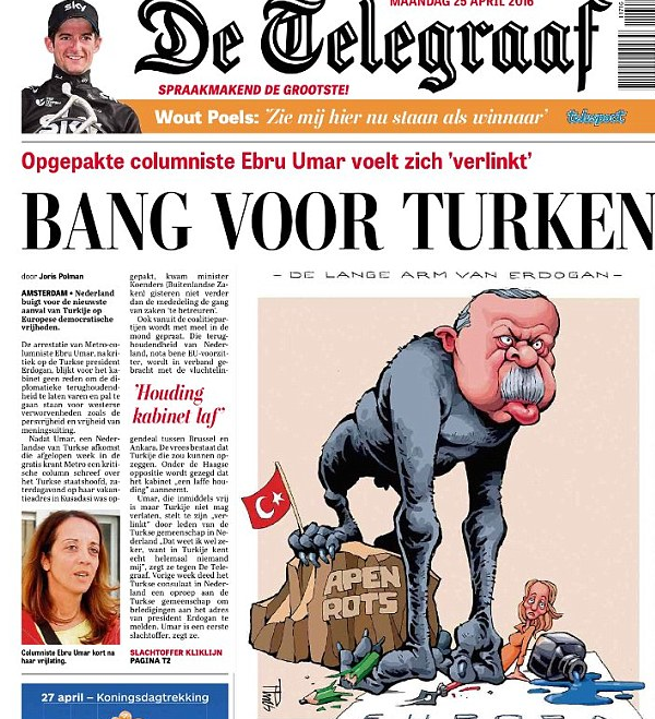 Hollandiyanın “De Telegraaf” qəzeti 26 aprel nömrəsində Türkiyə prezidenti Rəcəb Tayyib Ərdoğanın karikaturasını dərc edib.