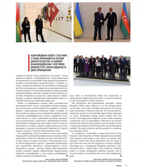 “Qafqazinfo” xəbər verir ki, Ukrayna və ingilis dillərində dərc olunan məqalədə dövlətimizin başçısının Azərbaycanın milli maraqlarına xidmət edən xarici siyasəti barədə geniş məlumat verilib.