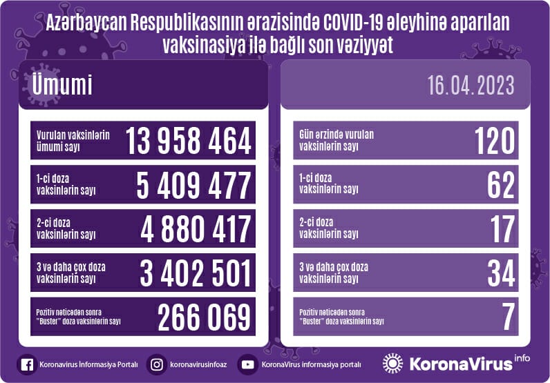 Azərbaycanda son sutkada koronavirus (COVID-19) əleyhinə 120 vaksin vurulub.