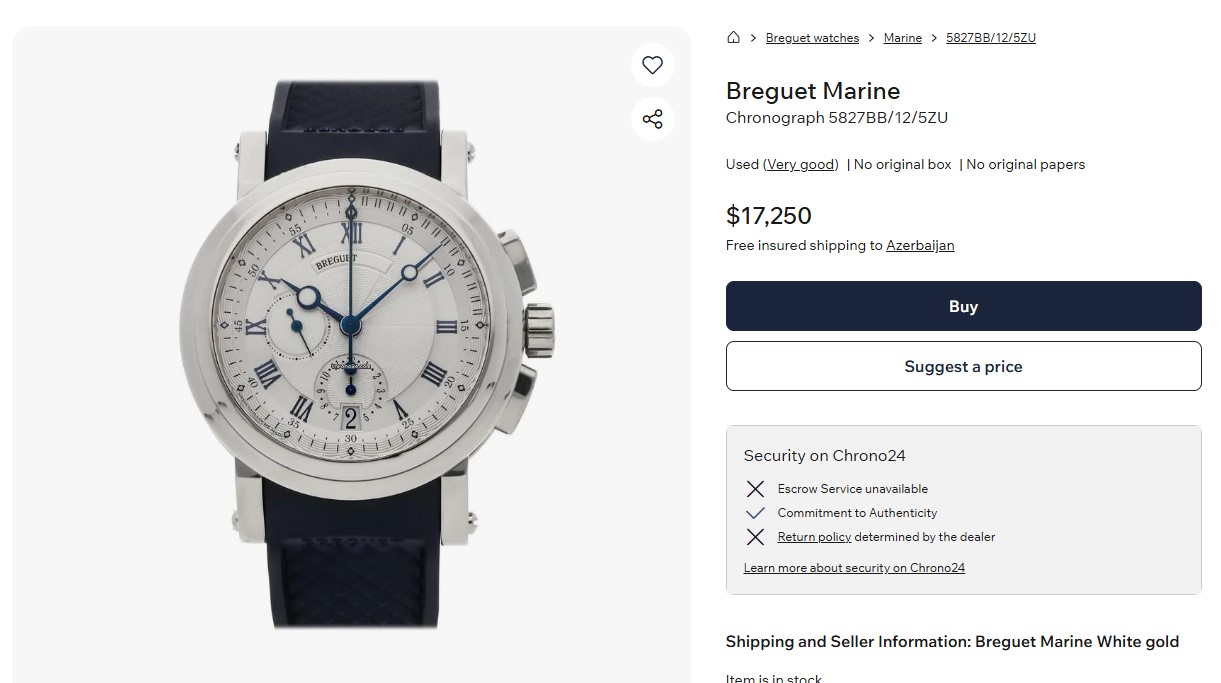 Amma bu saat da onun kolleksiyasının ən bahalı aksessuarı deyil. Onun siferblatı ağ qızıldan hazırlanmış “Breguet Marine Chronograph Men’s 5827bb/12/5zu” saatının qiyməti 17.250 dollardır.