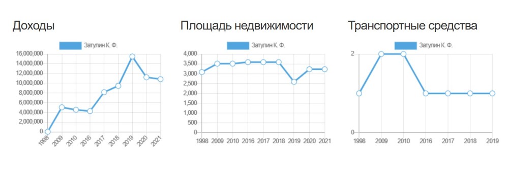 Rəsmi olaraq başqa gəlir mənbəyi olmayan Konstantin Zatulinin Krasnodar diyarından seçilmiş ən zəngin deputat olmağı bacarması artıq təəccüblü deyil. “Kommersant” qəzeti yazırdı ki, 2020-ci ilin avqust ayına olan məlumata görə Zatulin 15,5 milyon rubl qazandığını rəsmi bəyan edib.