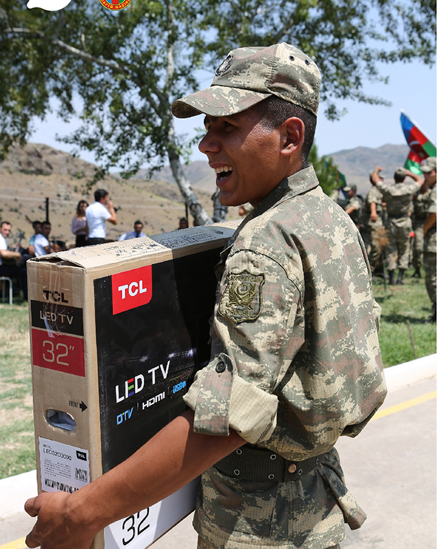 Əsgərlər canlı musiqinin sədaları altında Silahlı Qüvvələr Gününü qeyd edirlər. Vətən torpaqları bu gənclərə əmanətdir. Onlar bu məsuliyyəti dərindən hiss edir, bu şərəfli işə mətanətlə çiyin verirlər. “Hamımızın arzusu birdir: qələbə sevincini həm özümüz yaşayaq, həm də xalqımıza yaşadaq”- deyən hərbi hissənin komandiri bu sevinci yaşayacağımız günün çox da uzaqda olmadığını əminliklə söyləyir: «Silahlı Qüvvələrimizin 101-ci ildönümünü qeyd edirik. Bu bayram münasibətilə hərbi hissəmizdə bir neçə tədbir həyata keçirilib. İki gün öncə hərbi hissələrdə “Açıq qapı” günü elan olunub. İctimaiyyət nümayəndələri, xidmətdə olan əsgərlərin valideynləri hərbi hissənin texniki bazası və məişət şəraiti ilə tanış oldular. Əsgərlərin dövlət tərəfindən hər cür təminatı var. Bundan əlavə, Silahlı Qüvvələrimizin inkişaf etdirilməsi üçün bütün qurumlar əllərindən gələn köməyi bizə göstərirlər. Eləcə də “NAR” bu gün hərbi hissəmizin ön mövqedə yerləşən bölməsinə əsgər və zabitlərlə görüşə gəlib. Şirkətin hədiyyə etdiyi mobil telefon vasitəsilə əsgərlər öz valideynləri ilə əlaqə saxlaya biləcəklər».