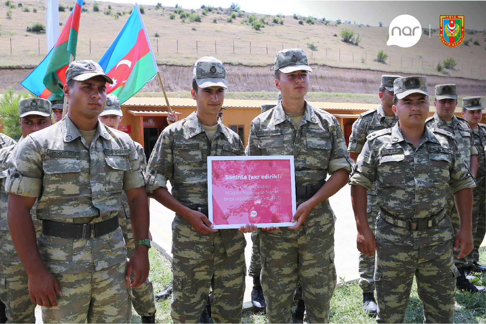 “Qafqazinfo” xəbər verir ki, “NAR” Silahlı Qüvvələrimizin 101-ci ildönümündə vətənpərvərlik amalına sadiq qalaraq Müdafiə Nazirliyi ilə birlikdə Azərbaycan Silahlı Qüvvələr Gününü düşmənlə üz-üzə olan sərhəd bölgəsində qeyd etdi. Şirkət “N” saylı hərbi hissənin əsgər və zabitləri ilə görüşə ənənəsinə uyğun olaraq, əliboş getmədi. Ölkənin müxtəlif bölgələrində yerləşən bir neçə hərbi hissədə yaratdığı telefon məntəqəsindən biri də bu hərbi hissənin payına düşdü. Mobil şəbəkə olaraq düşmənlə bir addımlıqda xidmət edən, Vətəni göz bəbəyi kimi qoruyan əsgərlərin valideynləri ilə rahat ünsiyyəti, ata-anaların övladları sarıdan nigaran qalmaması üçün ünsiyyət körpüsü yaratdı. Müdafiə Nazirliyi və “NAR”-ın birgə təşəbbüsü ilə yaradılan danışıq nöqtəsi əsgərlər tərəfindən böyük sevinclə qarşılandı. Bundan sonra onlar “Nar” danışıq nöqtəsi vasitəsilə əzizləri ilə ünsiyyətdə olacaq, ürək sözlərini, arzularını söyləyəcək, valideynlərinin əhvalından xəbər tutacaqlar...