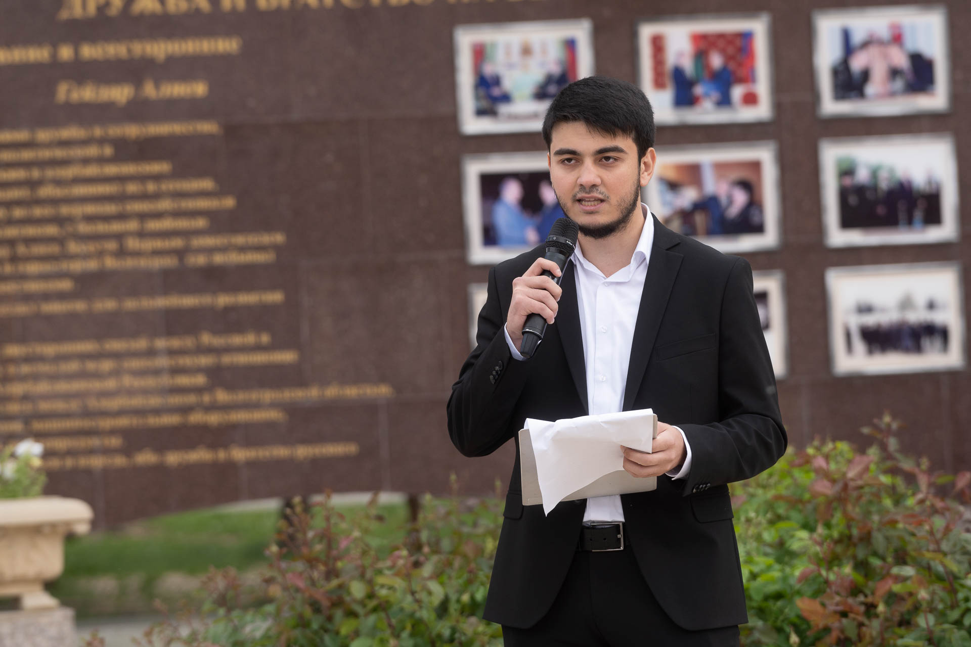 Çıxış edən rəsmi şəxslər və ictimai xadimlər dahi liderin zəngin və şərəfli həyat yolundan, Azərbaycan xalqının tarixində oynadığı müstəsna roldan danışaraq vurğulayıblar ki, Heydər Əliyev təkcə Azərbaycanın deyil, bütün dünya azərbaycanlılarının Ümummilli lideridir. Onun uzaqgörən siyasəti nəticəsində Azərbaycan dünya birliyində layiqli yerini tutub, iqtisadiyyatı və mədəniyyəti inkişaf edib, müstəqilliyi möhkəmlənib. Rusiya-Azərbaycan əlaqələrinin strateji tərəfdaşlıq səviyyəsinə yüksəlməsində də məhz Heydər Əliyevin diplomatik məharəti və siyasi iradəsi xüsusi rol oynayıb.