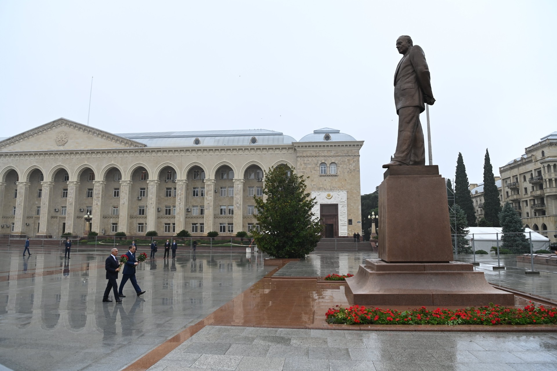 Əvvəlcə Ümummilli Lider Heydər Əliyevin Gəncə şəhərindəki abidəsi ziyarət olunaraq önünə gül dəstələri qoyulub, xatirəsi ehtiramla yad edilib.