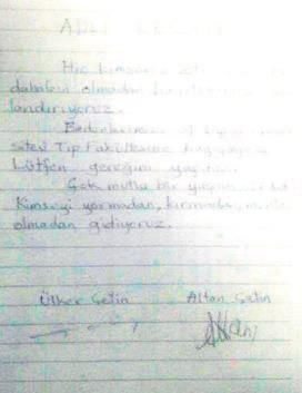 Cütlüyün məktubdakı son sözləri: “Heç kimin təsiri və müdaxiləsi olmadan həyatımıza son veririk. Bədənlərimizi 9 sentyabr Universiteti Tibb Fakultəsinə bağışlayırıq. Xahiş edirik lazım olanı edin. Çox xoşbəxt bir həyat yaşadıq. Heç kimi incitmədən, qırmadan, möhtaç olmadan gedirik”.