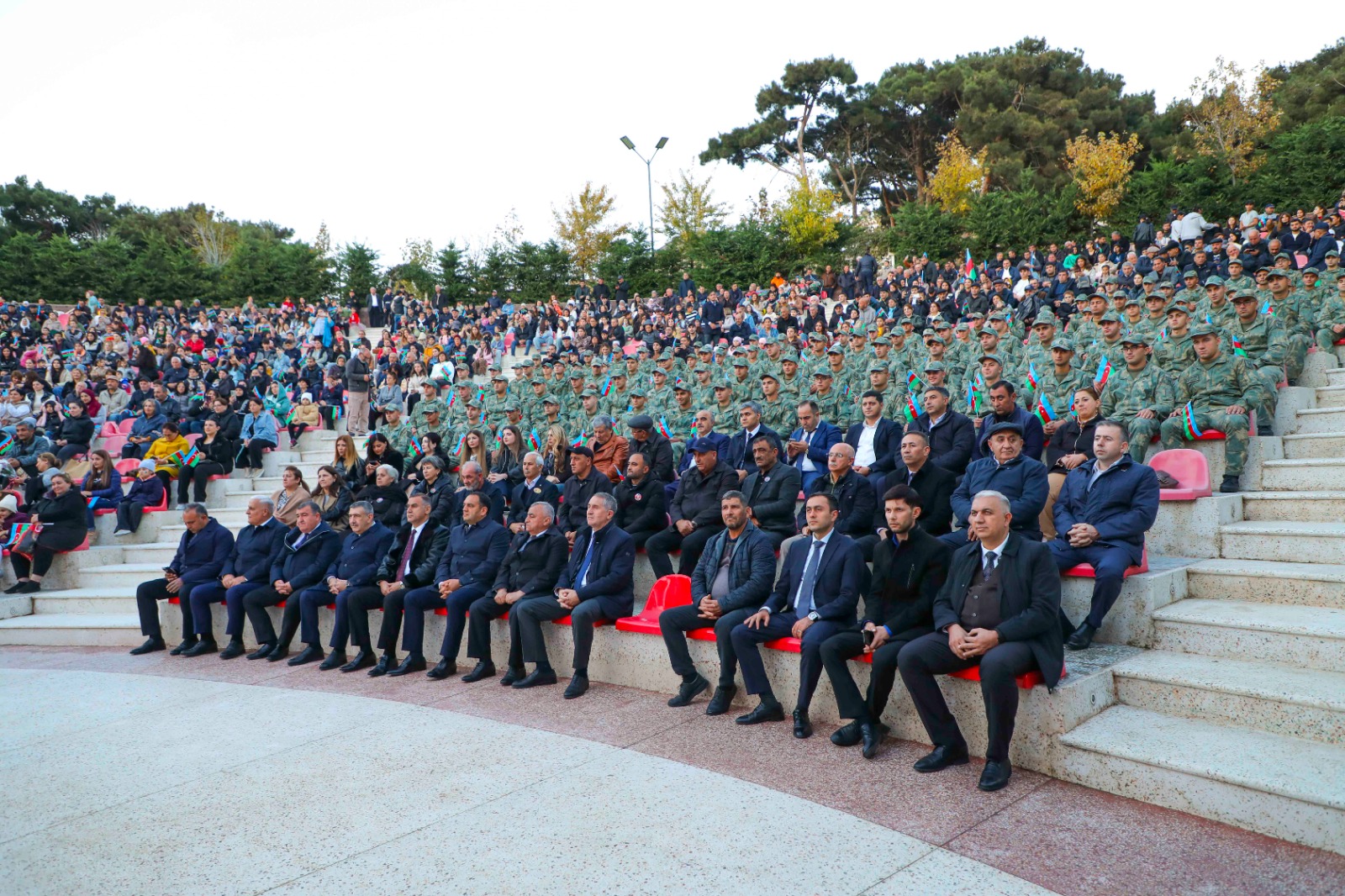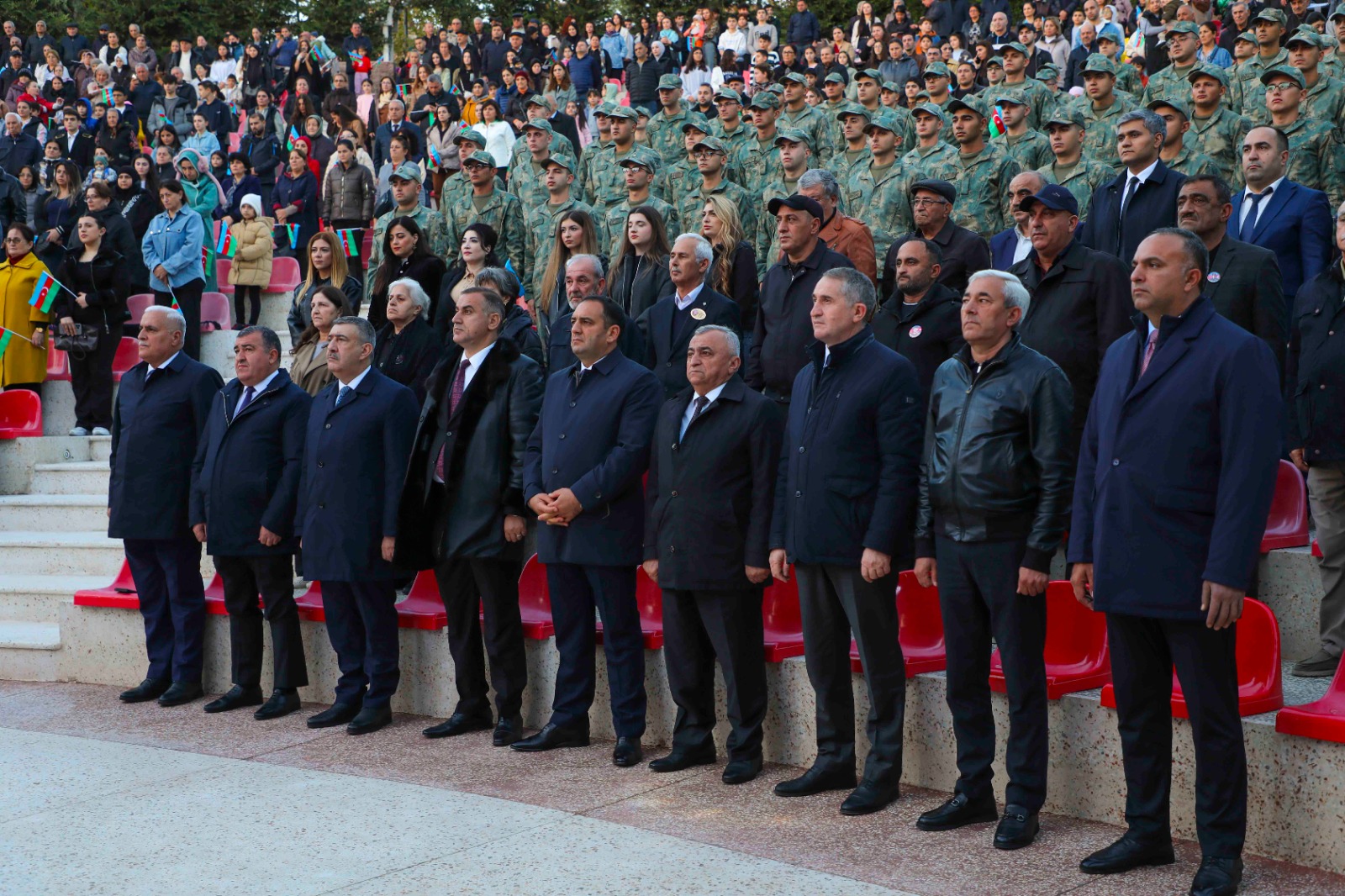 Tədbirdə qeyd olunub ki, Prezident, Silahlı Qüvvələrin Ali Baş Komandanı İlham Əliyevin böyük cəsarəti və əzmkarlığı sayəsində Vətən müharibəsində Azərbaycan Ordusu möhtəşəm Qələbə qazanıb. 8 Noyabr – Zəfər Günü bizim tariximizdə olan ən parlaq səhifədir. Beş il bundan əvvəl tarixi Zəfərimiz bütün dünyaya səs salıb. Son beş ilin tarixi Zəfər tarixidir, şanlı tariximizdir. Artıq üç rəngli bayrağımız 30 il işğal altında qalan torpaqlarımızın hər qarışında dalğalanmaqdadır. Bu möhtəşəm qələbə Ali Baş Komandan İlham Əliyevin siyasi və hərbi iradəsi, igid vətən oğullarımızın qəhrəmanlığı və xalqımızın birliyi nəticəsində əldə olunub. Həmçinin, Allahdan şəhidlərimizə rəhmət, qazilərimizə cansağlığı dilənib, Prezident, Müzəffər Ali Baş Komandan İlham Əliyevə və Silahlı Qüvvələrimizin qəhrəman əsgər və zabitlərinə minnətdarlıq ifadə edilib.