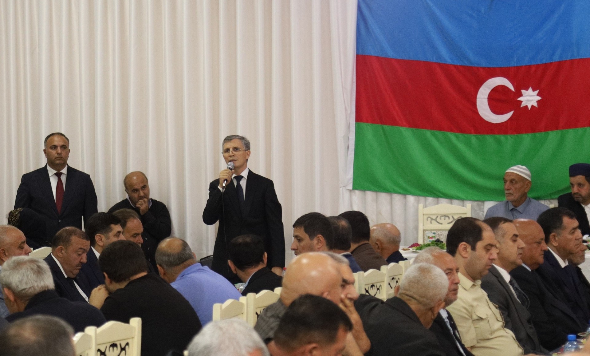 Daha sonra rayon İcra Hakimiyyəti tərəfindən şəhidlərin xatirəsinə ehsan süfrəsi təşkil olunub. Mərasimdə icra başçısı Rafiq Quluyev çıxış edərək 2020-ci ilin 27 sentyabr tarixində Ali Baş Komandanın rəhbərliyi ilə rəşadətli Azərbaycan Ordusunun işğal olunmuş torpaqlarımızın geri alınması məqsədilə zəfər yürüşünə başlaması ilə tariximizin şanlı səhifələrinin yazıldığını, bu günün Anım Günü kimi qeyd edilməsinin şəhid ruhlarına, şəhidlərin doğmalarına ali ehtiramın göstəricisi olduğunu diqqətə çatdırıb.