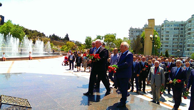 “Qafqazinfo” xəbər verir ki, İcra Hakimiyyətinin başçısı Razim Məmmədov, millət vəkilləri Hüseynbala Mirələmov, Hadi Rəcəbli, Yaponiyanın Yapon bağları və parklarının salınması və dizaynı üzrə ixtisaslaşmış “KOSUGİ ZOHEN” şirkətinin prezidenti Saki Kosuqi, həmin şirkətin məsul işçisi Andreas Hamachi Xətai rayonundakı Heydər Əliyev adına parkda olub, H. Əliyevin abidəsini ziyarət edib, abidənin üzərinə tər çiçəklər qoyublar.