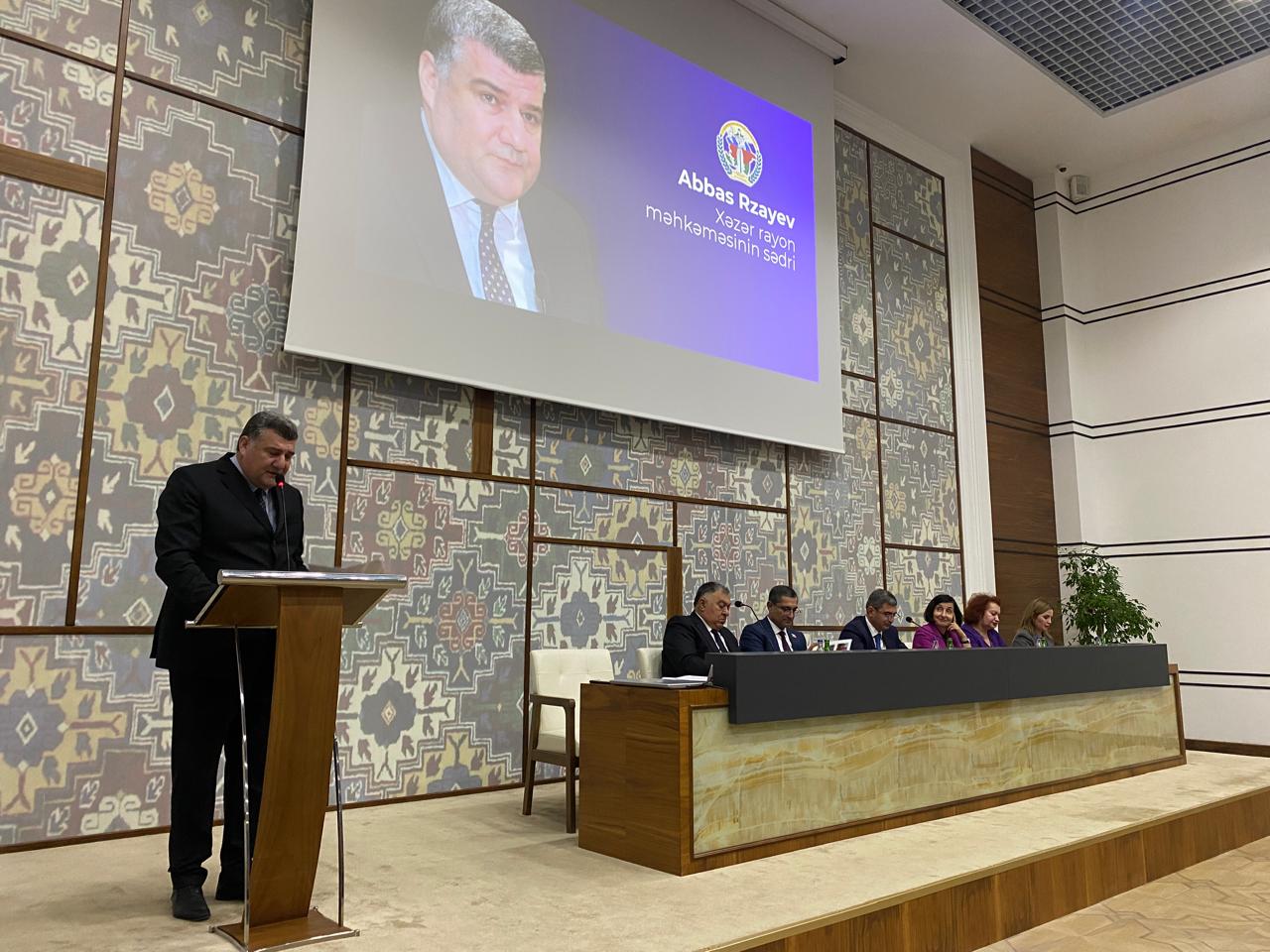 “Qafqazinfo” xəbər verir ki, Rayon İcra Hakimiyyətinin təşkilatçılığı ilə “Şimal” Elektrik Stansiyasının inzibati binasında keçirilən tədbirdə Xəzər RİH-nin başçısı Elşən Salahov, RİH başçısının müavinləri və Aparatın əməkdaşları, Milli Məclisin deputatları Soltan Məmmədov və Gülşən Paşayeva, Bakı Dövlət Universitenin kafedra müdiri, tarix elmləri doktoru, professor İradə Hüseynova, Mətbuat Şurasının İdarə Heyətinin üzvü, politoloq Yeganə Hacıyeva, YAP Xəzər rayon təşkilatının sədri Namiq Əhmədov, Xəzər rayon məhkəməsinin sədri Abbas Rzayev, qəsəbə inzibati ərazi dairələri üzrə nümayəndələri, bələdiyyə sədrləri, rayonun idarə-təşkilat, təhsil və səhiyyə müəssisələrinin rəhbərləri iştirak edib.