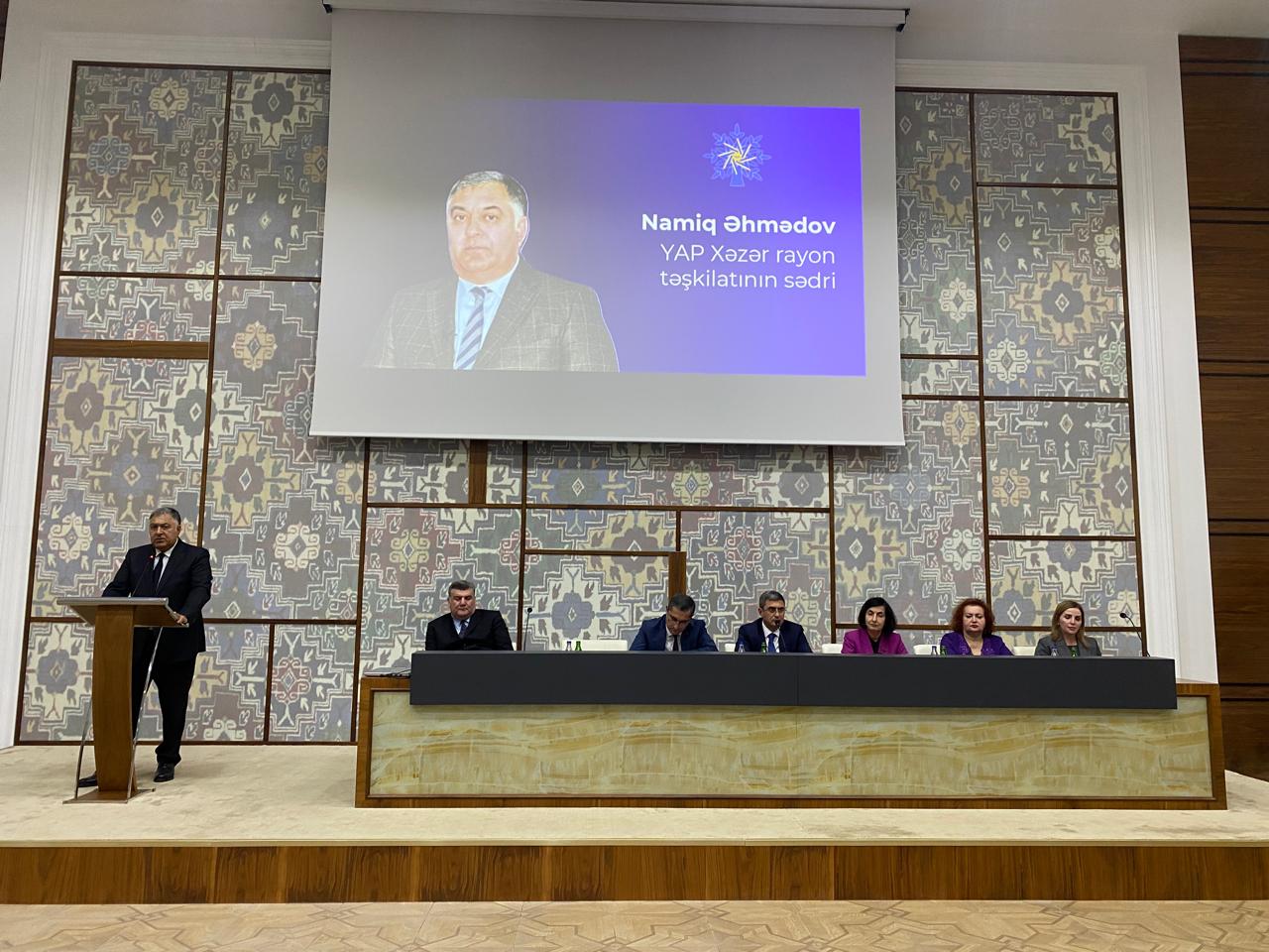 Tədbirin sonunda rayonun ictimai-siyasi həyatında səmərəli fəaliyyətinə görə bir qrup şəxsə Xəzər RİH başçısının fəxri fərmanları təqdim edilib.