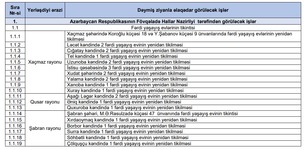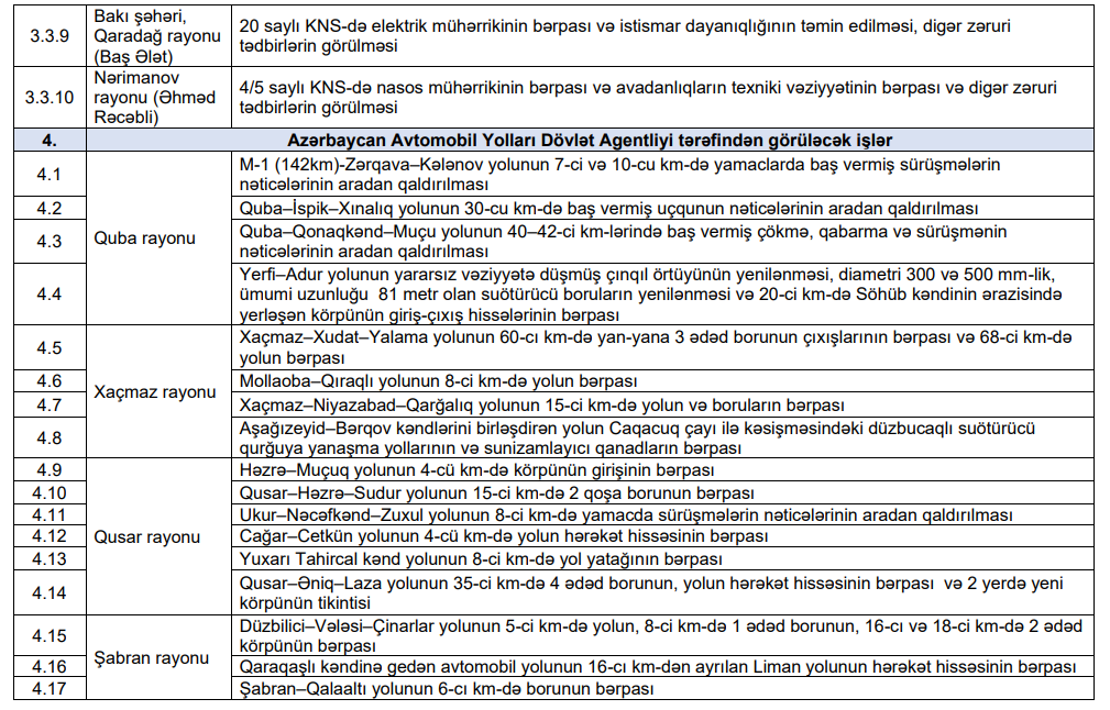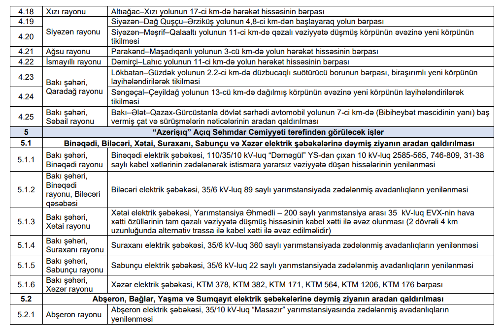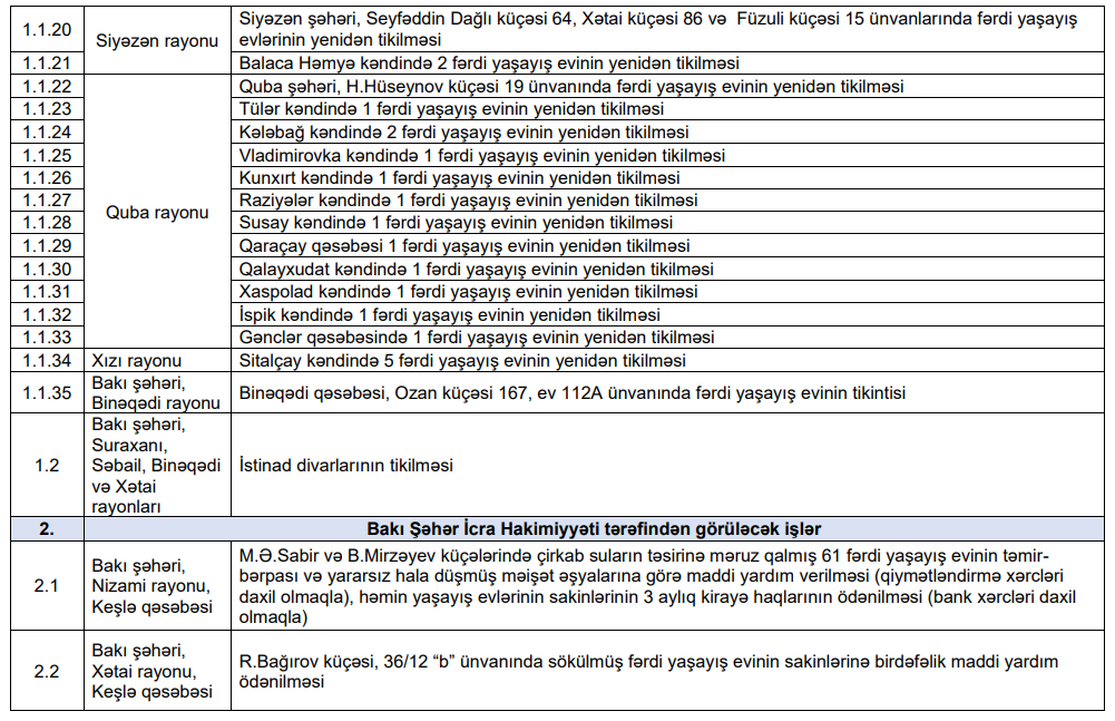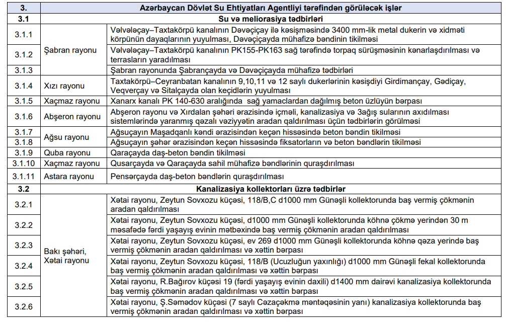 Prezident İlham Əliyev Bakı şəhərində və Azərbaycanın müxtəlif bölgələrində güclü leysan yağışları və yaranan sel suları nəticəsində dəymiş zərərin fəsadlarının aradan qaldırılması ilə bağlı görüləcək işlərin siyahısını təsdiqləyib.