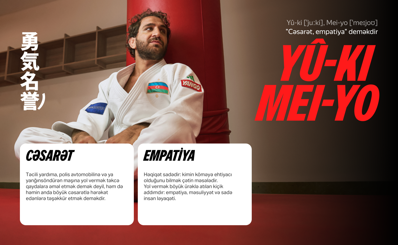 Layihənin əsas siması cüdo üzrə Olimpiya və dünya çempionu Hidayət Heydərov olub. Əməkdaşlıq çərçivəsində “Yango Azerbaijan” balans, qarşı tərəfə hörmət və özünə nəzarət kimi keyfiyyətlərin sükan arxasında təhlükəsiz və soyuqqanlı davranışa necə kömək etdiyini əyani şəkildə göstərən rəqəmsal layihə hazırlayıb. Layihə ilə xüsusi olaraq açılmış saytdan tanış olmaq olar: https://yango.com/az_az/lp/judo/