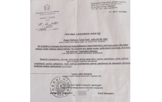 Bu şikayətlə “Qafqazinfo”ya Tovuz rayonunun Aşağı Quşçu kəndindən olan Vətən müharibəsi qazisi Tural Səfərov müraciət edib. Onun sözlərinə görə, ötən ilin oktyabrında Ağdərə, Suqovuşan istiqamətlərində döyüşlərdə yaralanıb. Bir müddət Tərtər və Bərdədə, Sarıcalı hospitalında müalicə olunduqdan sonra Bakıya köçürülüb. Dekabrın əvvəlindən isə ordudan tərxis olunub: “Müharibədə ayağımdan, qolumdan qəlpə yarası almışam, kəllə-beyin travmam, sol gözümdə ciddi problemim var. “YAŞAT” Fondundan əvvəlcə müalicəmə kömək elədilər, sonradan dərmanlarımı almadılar. Həkim 3 resept yazıb, onları ala bilmirəm. Zülm çəkirəm, 2 uşaqla qalmışam ortalıqda”.