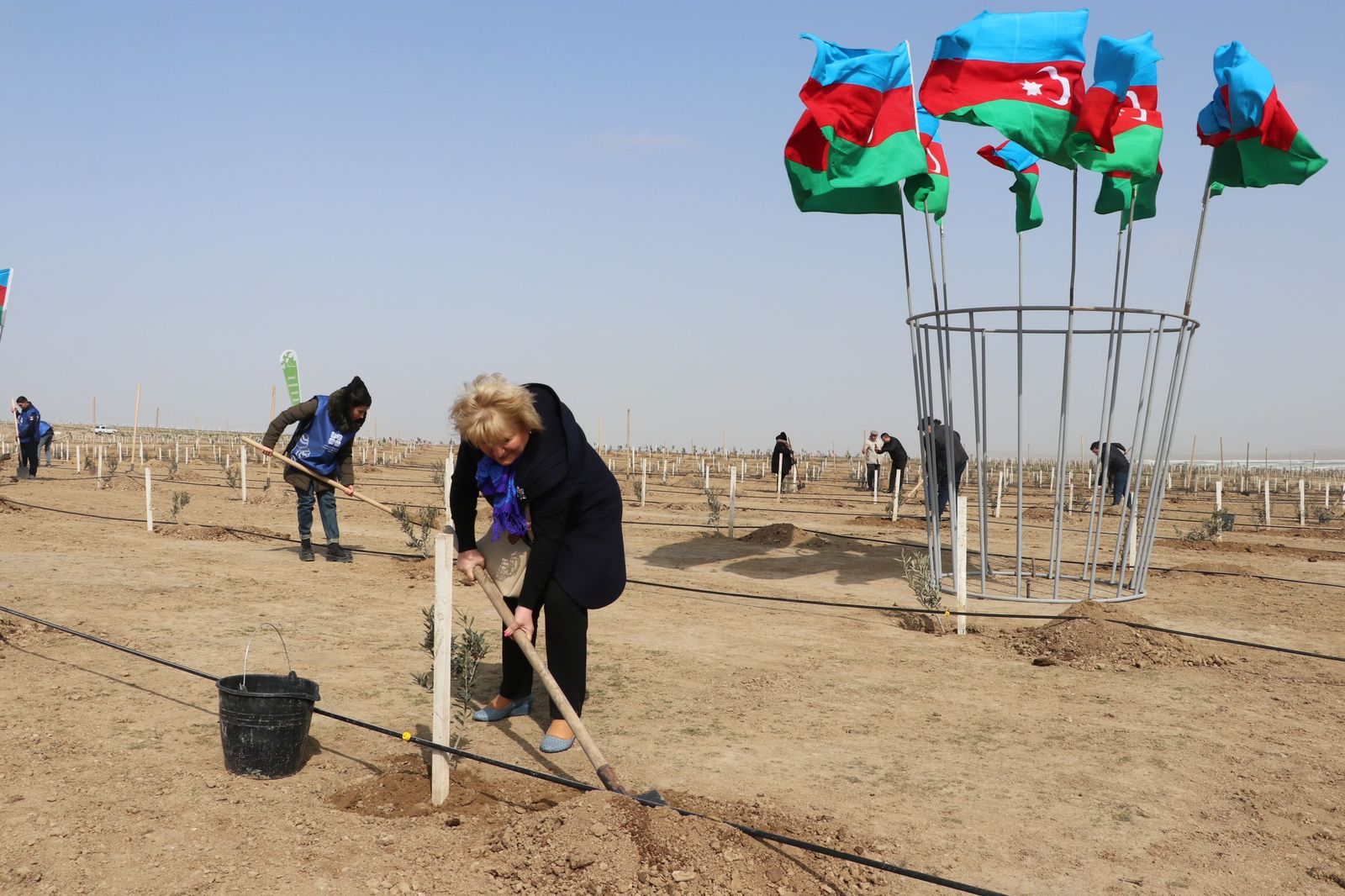 “Yaşıl dünya naminə həmrəylik ili” çərçivəsində keçirilən aksiya zamanı 1 hektar ərazidə Abşeron yarımadasının torpaq-iqlim şəraitinə uyğun Eldar şamı və zeytun ağacları əkilib.