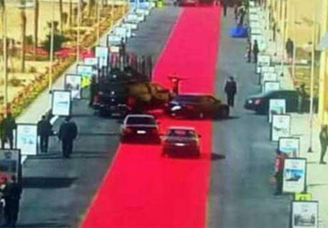 “Qafqazinfo” anspress-ə istinadən xəbər verir ki, Sisi və hökumət rəsmilərinin Qahirənin 6 Oktyabr adlı məhəlləsinə səfər zamanı maşınlar üçün də yol boyu uzun bir qırmızı xalça sərilib.