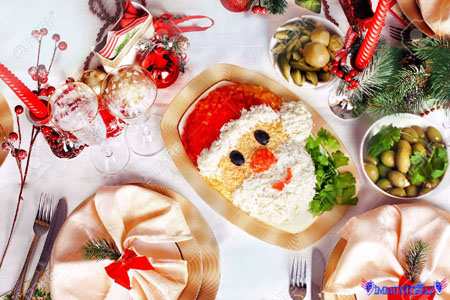 İlin simvolunu əks etdirən fiqurlar, oyuncaqlar və bəzəklər süfrəyə maraqlı, tematik görünüş verir.
