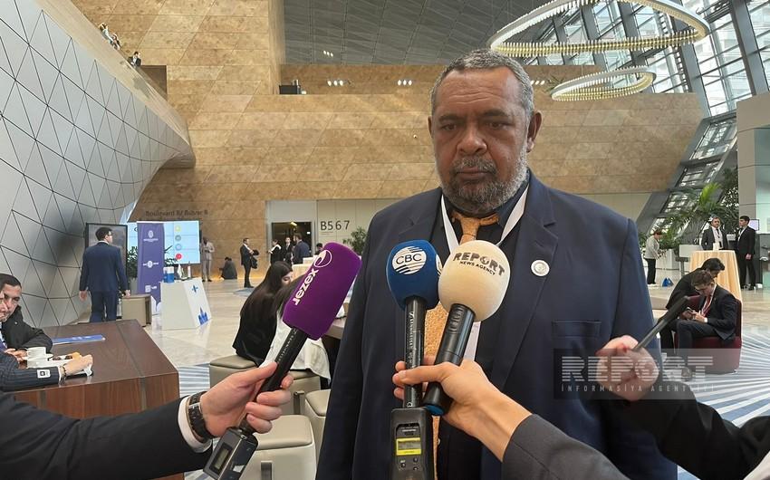 Ölkəsinin tarixindən danışan diplomat qeyd edib ki, Yeni Kaledoniya 1986-cı ildən BMT-nin qeydiyyatından keçmiş ölkələrdən biridir: "Bu təsisat tərəfindən açıq formada qeyd olunub ki, Fransa müstəmləkəçiliyinə son qoyulmalıdır. Bakı platformasından haqq səsimizi çatdırırıq və Fransaya qarşı beynəlxalq təzyiqlərin artacağına ümid edirik. Yeni Kaledoniya xalqı müstəmləkəçilik zülmündən xilas olacağı günü səbrsizliklə gözləyir".