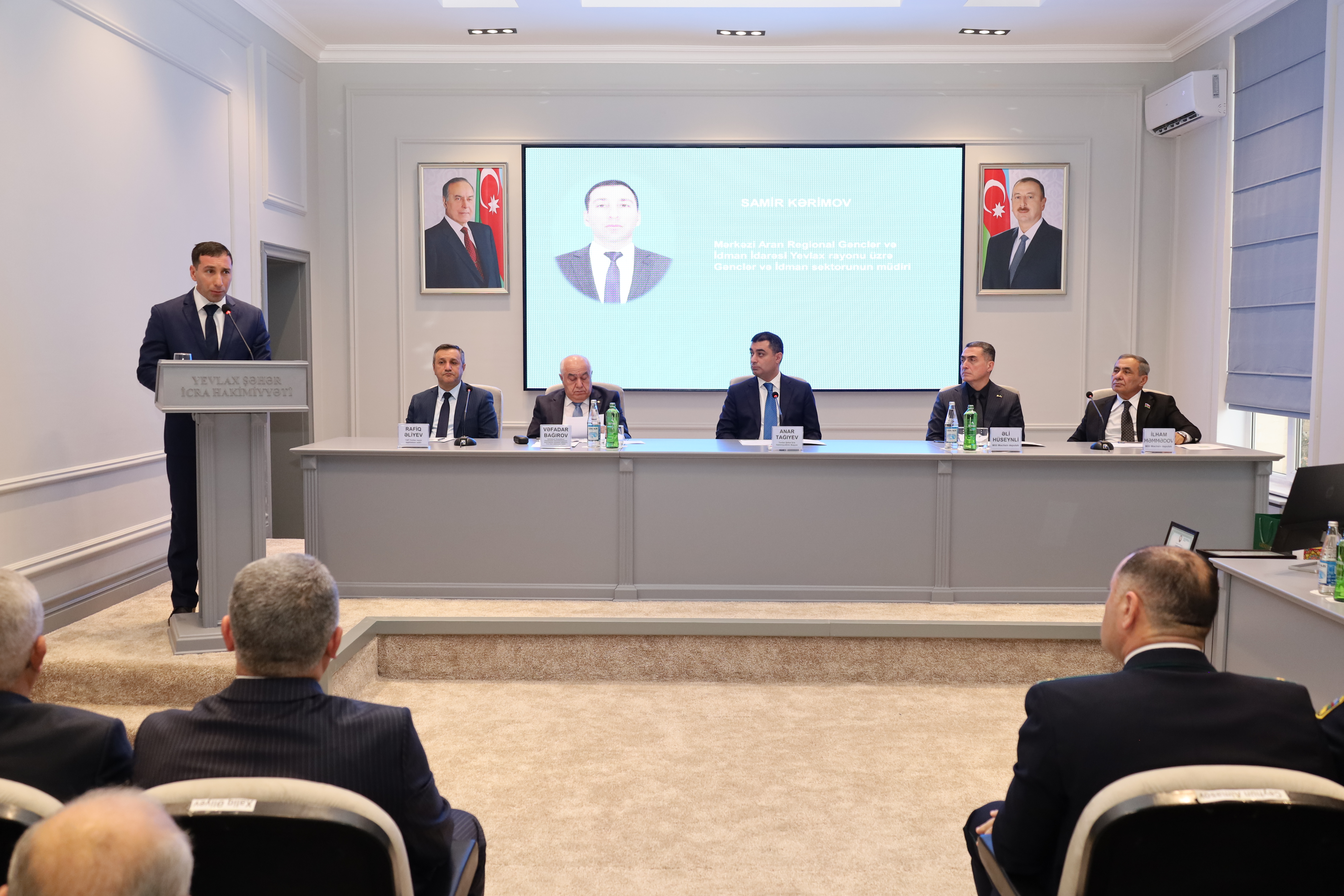 “Qafqazinfo” xəbər verir ki, Yevlax Şəhər İcra Hakimiyyətində keçirilən hesabat iclasında Yevlax Şəhər İcra Hakimiyyətinin başçısı Anar Tağıyev, Azərbaycan Respublikası Prezidenti Administrasiyasının Ərazi-təşkilat məsələləri şöbəsinin 3-cü ərazi sektorunun müdiri Vəfadar Bağırov, Milli Məclisin deputatları İlham Məmmədov, Əli Hüseynli, YAP Yevlax rayon təşkilatının sədri Rafiq Əliyev, rayonun hüquq-mühafizə orqanlarının rəhbərləri, Şəhər İcra Hakimiyyəti başçısı Aparatının məsul işçiləri, rayonun təhsil, səhiyyə, mədəniyyət və digər müəssisələrin rəhbərləri, şəhid ailələrinin üzvləri, qazilər və rayon ictimaiyyətinin nümayəndələri iştirak ediblər.
