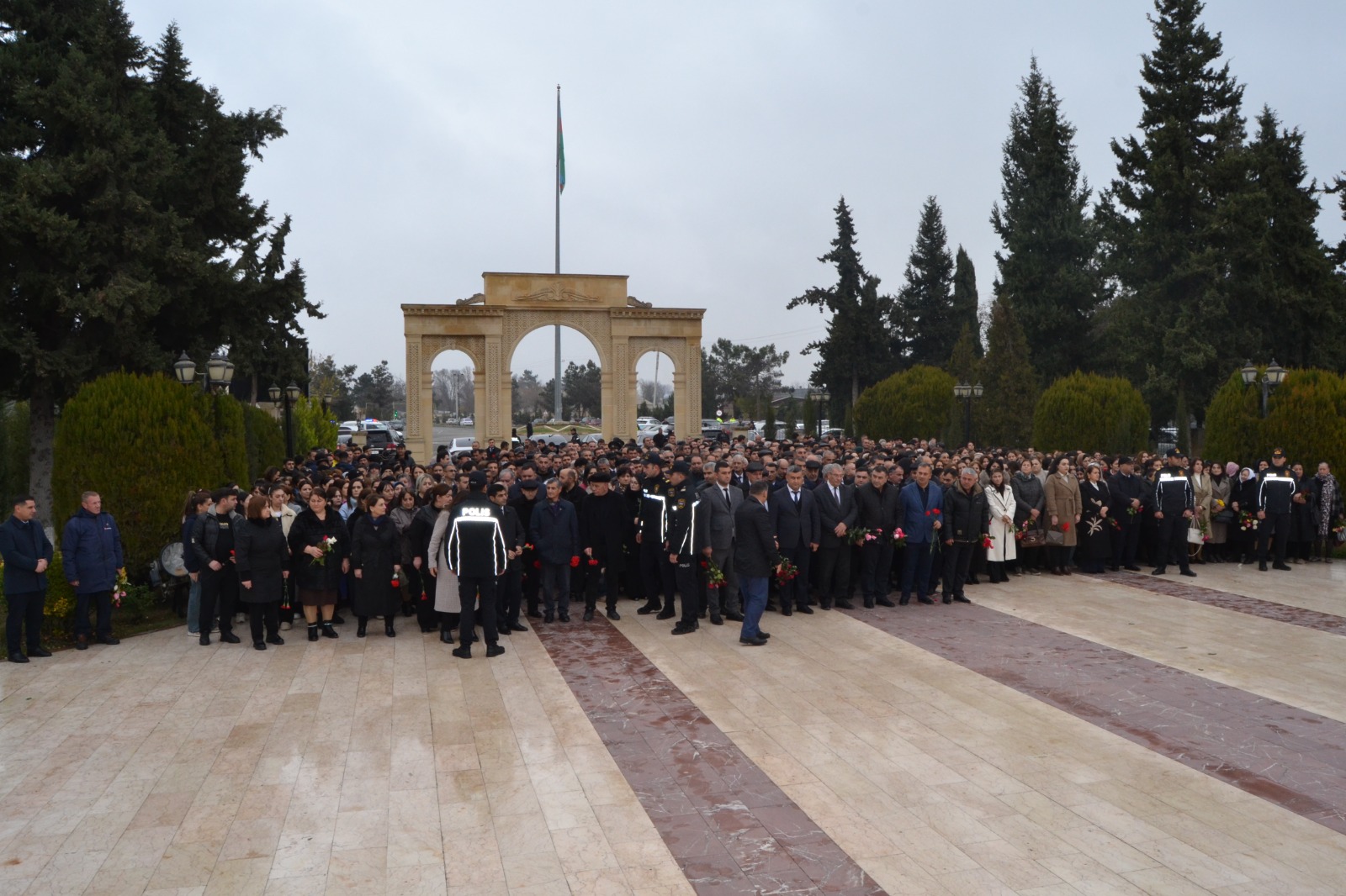 Tədbir iştirakçıları öncə ulu Öndərin abidəsini ziyarət edərək önünə gül dəstələri qoyub, xatirəsini ehtiramla yad ediblər.