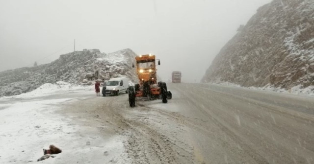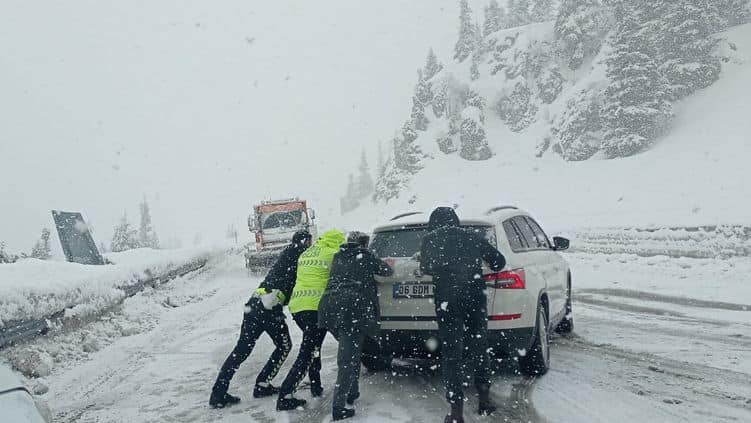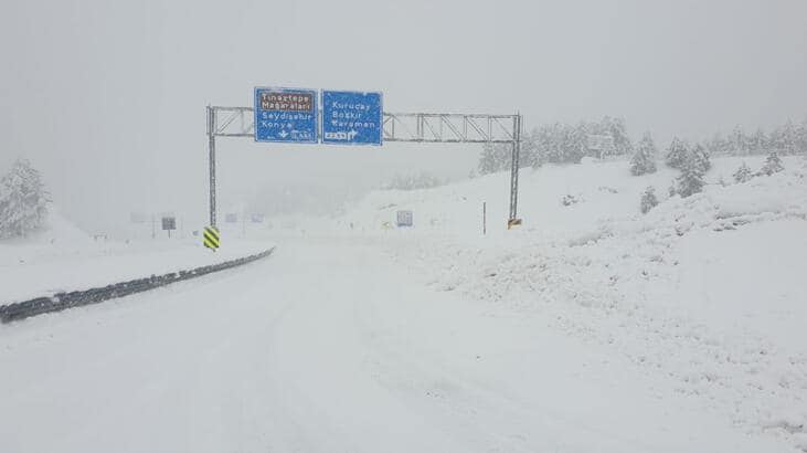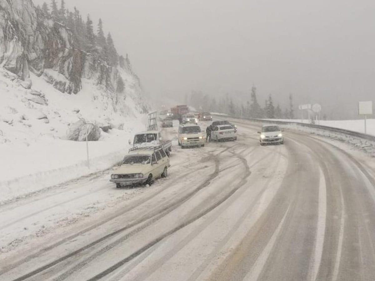 Снег пошел на трассе Алакабель. Он начался с района Каклыкташ Батти Чыкты и продолжался до границы провинции Конья.