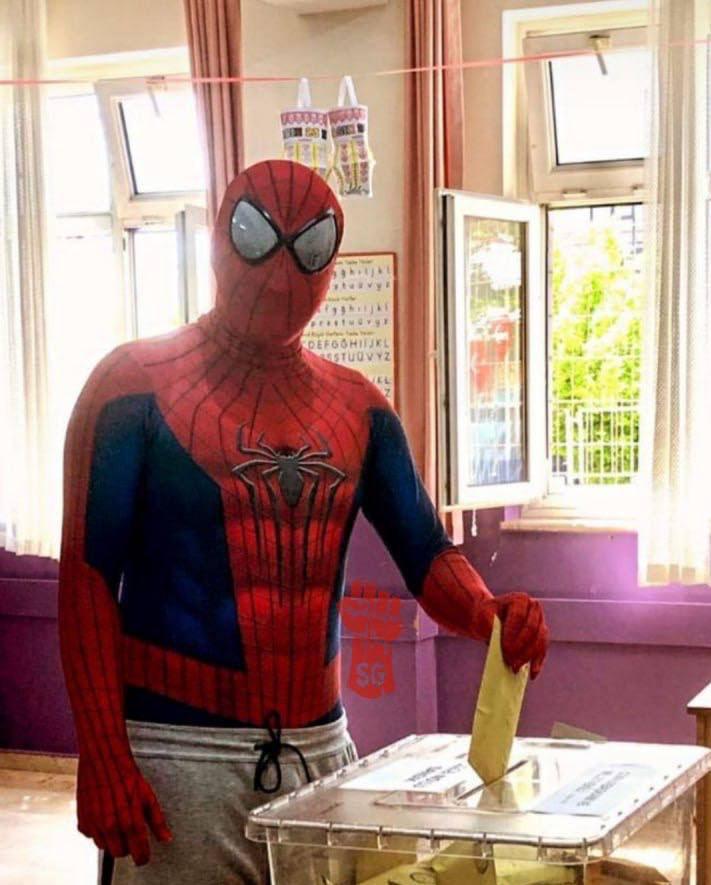 Хотелось обратить внимание, что простые жители в этот день очень даже отличились, облачившись в национальные костюмы, а кто-то превратился в Человека-паука, один прибыл на избирательный участк на коне, также один человек пришел в участок с попугаем, наверно в качестве группы поддержки.