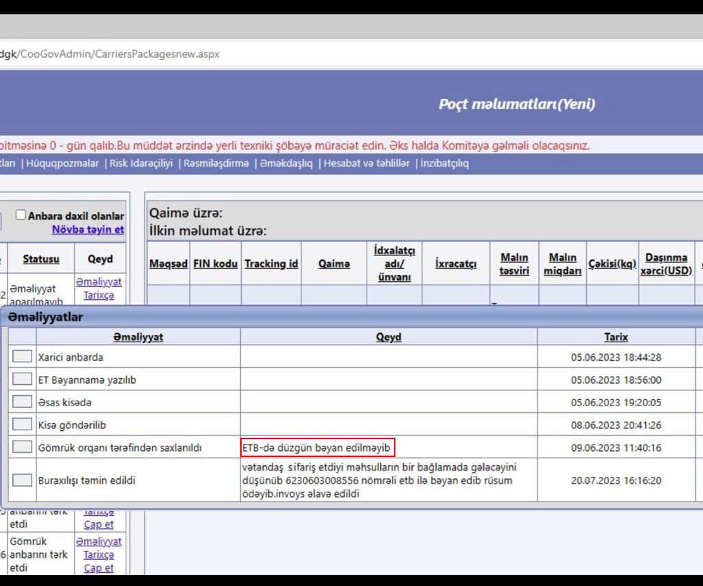 Таким образом, случай, упомянутый Агилем Лайиджем в социальной сети, произошел не по вине таможенного органа, а из-за несоответствия при декларировании. В связи с этим, оплата была произведена из-за хранения товара».