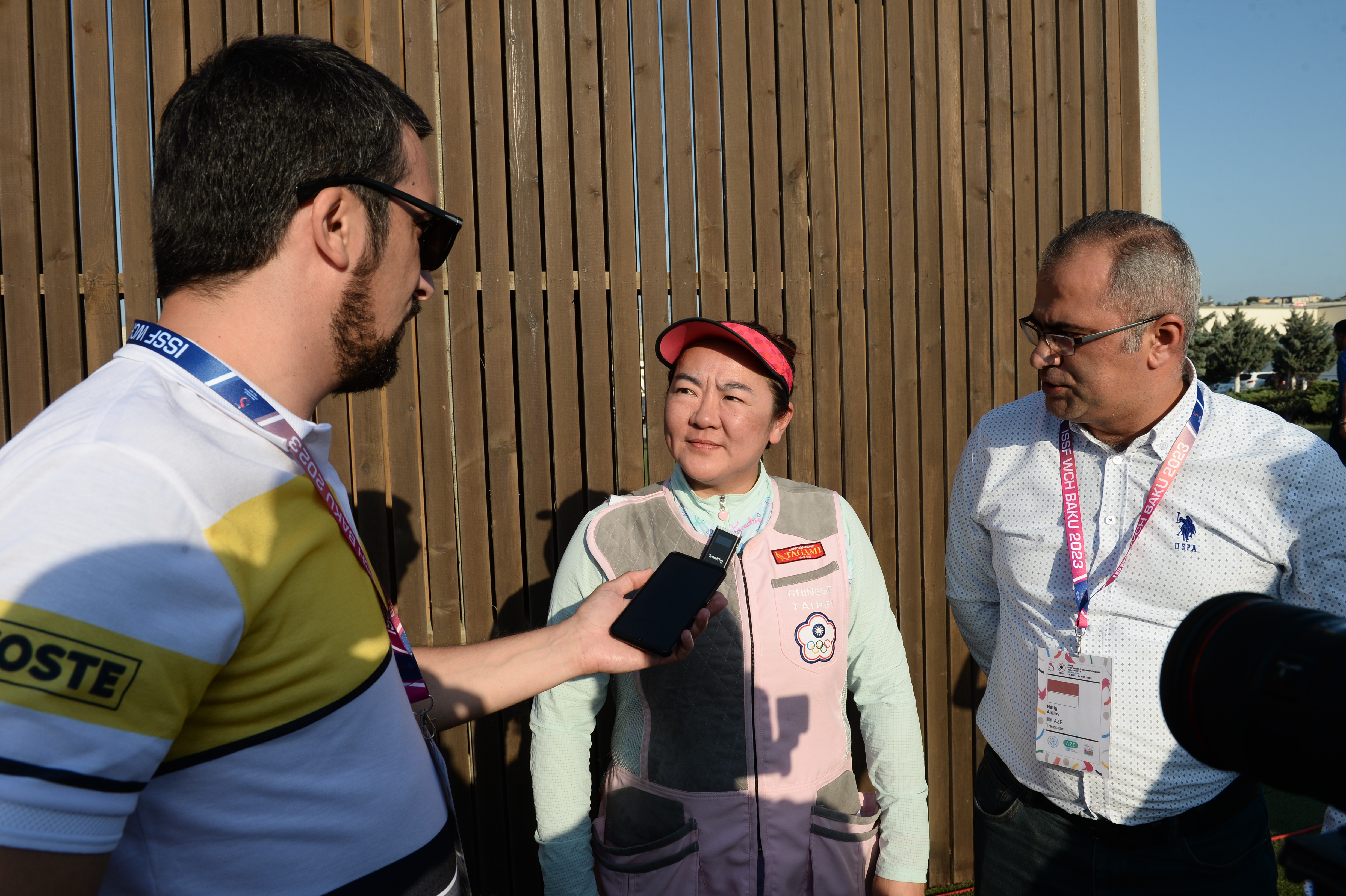 «Это моя первая золотая медаль в траншейном стенде. Я очень счастлива. Стрельба – это моя жизнь. Я занимаюсь этим видом спорта с 16 лет. Я в этом спорте уже 26 лет. Я этим дышу, это моя жизненная философия. Моя соперница по финалу Джессика Росси – очень сильная спортсменка, она выиграла золотую медаль на Олимпиаде в Лондоне. Я надеюсь, что однажды я добьюсь этого успеха. Джессика — мой идеал. Я не была удивлена полученной золотой медалью. Я все еще считаю себя молодой, я не старой для спорта».