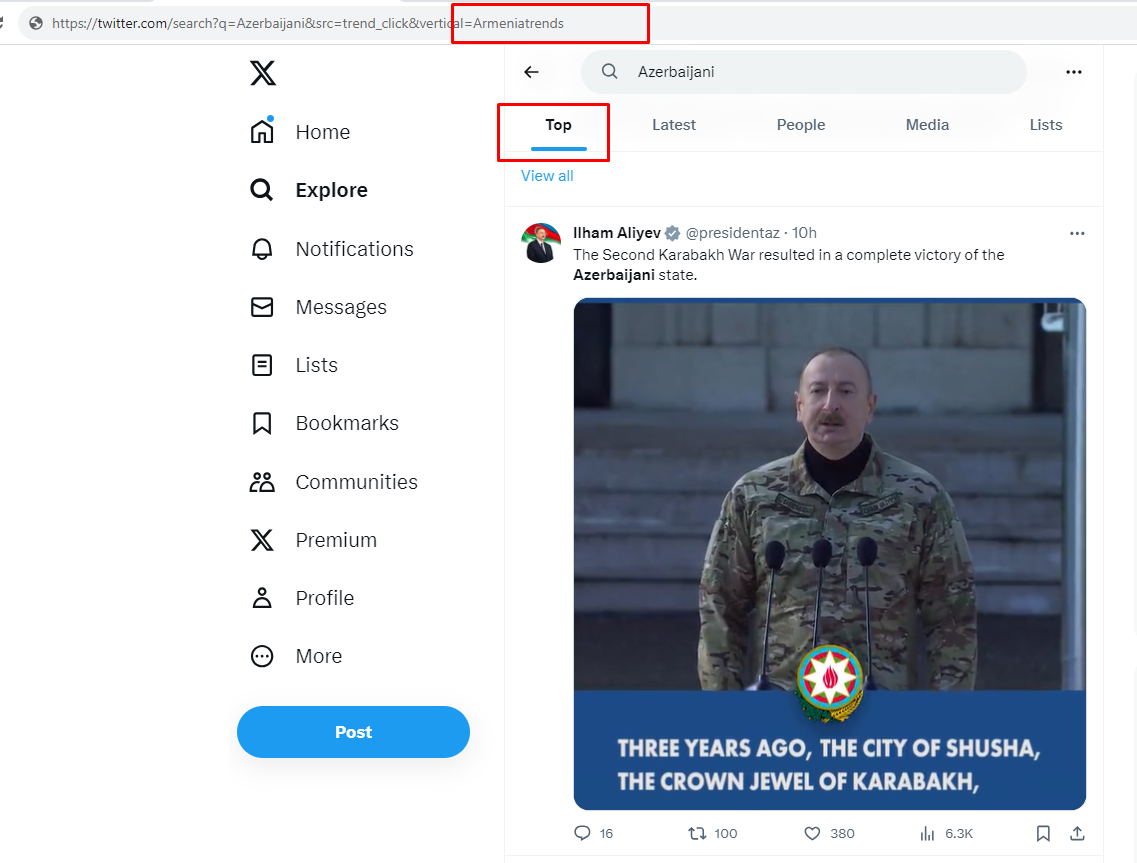 Таким образом, армянские пользователи искали и читали в соцсети «Х» больше всего новостей, связанных с Азербайджаном.