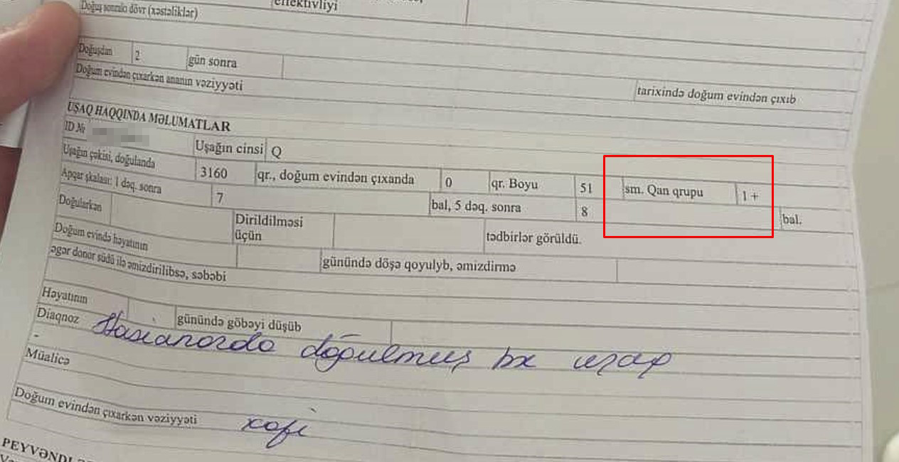 В Азербайджане новорожденному ребенку определили неправильную группу крови.