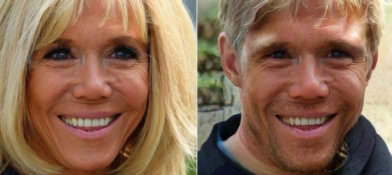 Программа сравнила детскую фотографию Джона и нынешнее фото первой леди Франции и нашло почти 100-процентное сходство.